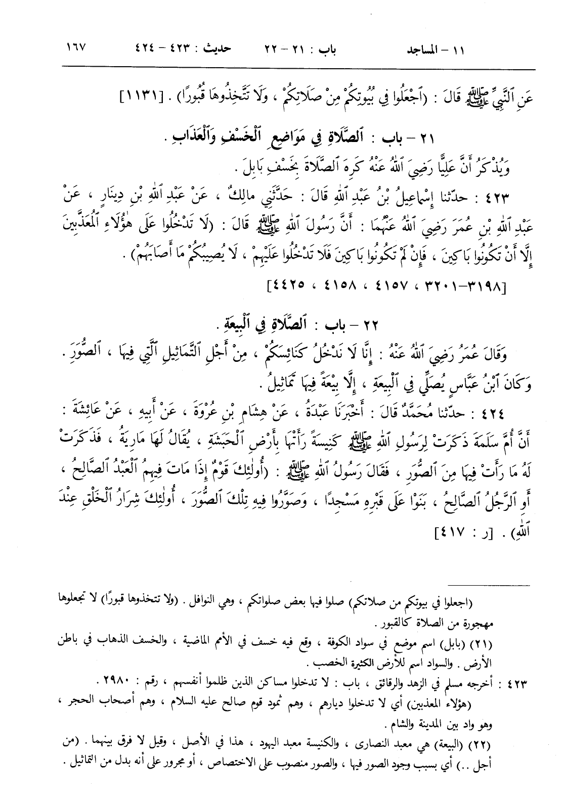 : أن أم سلمة ذكرت لرسول الله صلى الله عليه و سلم كنيسة رأتها بأرض الحبشة يقال لها مارية فذكرت له ما رأت فيها من الصور فقال رسول الله صلى الله عليه و سلم ( أولئك قوم إذا مات فيهم العبد الصالح أو الرجل الصالح بنوا على قبره مسجدا وصوروا فيه تلك الصور أولئك شرار الخلق عند الله )