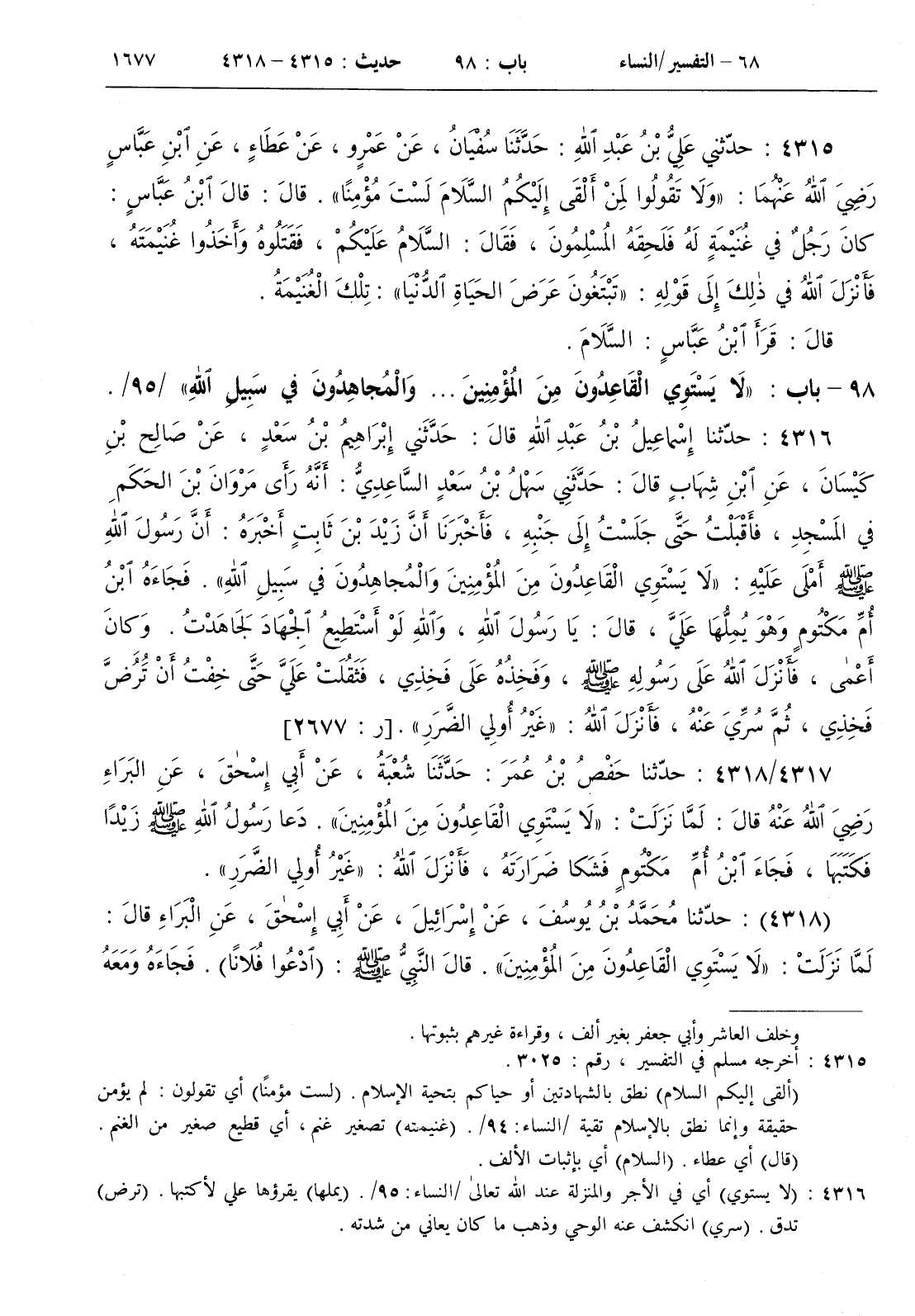 98 - باب { لا يستوي القاعدون من المؤمنين . . والمجاهدون في سبيل الله } / 95 /