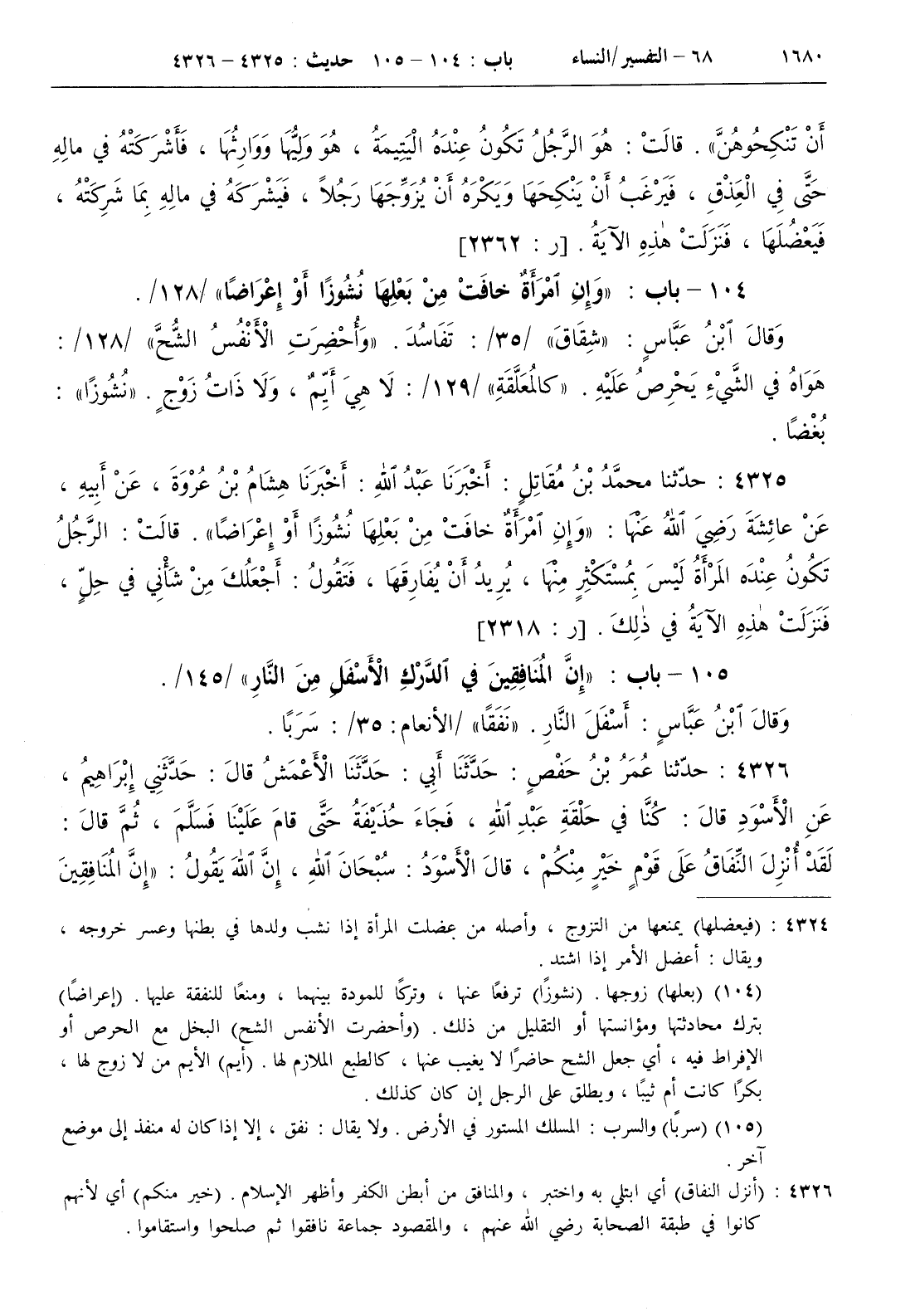 105 - باب { إن المنافقين في الدرك الأسفل من النار } / 145 /