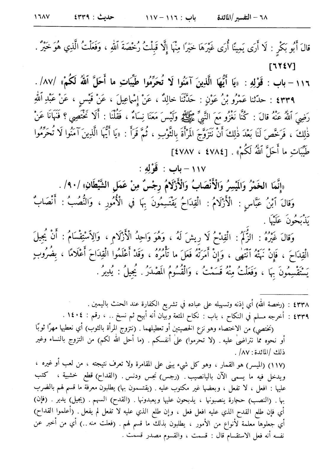 117 - باب قوله { إنما الخمر والميسر والأنصاب والأزلام رجس من عمل الشيطان } / 90 /