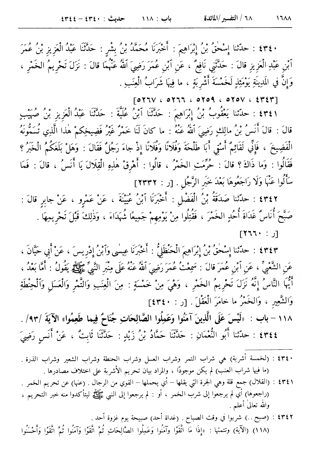 118 - باب { ليس على الذين آمنوا وعملوا الصالحات جناح فيما طعموا } الآية / 93 /