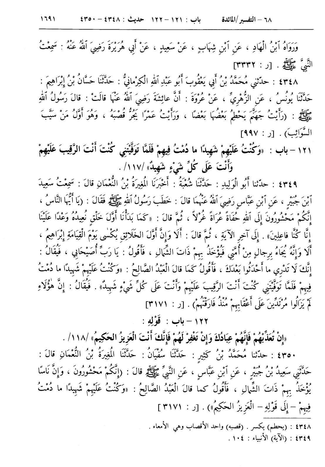 121 - باب { وكنت عليهم شهيدا ما دمت فيهم فلما توفيتني كنت أنت الرقيب عليهم وأنت على كل شيء شهيد } / 117 /