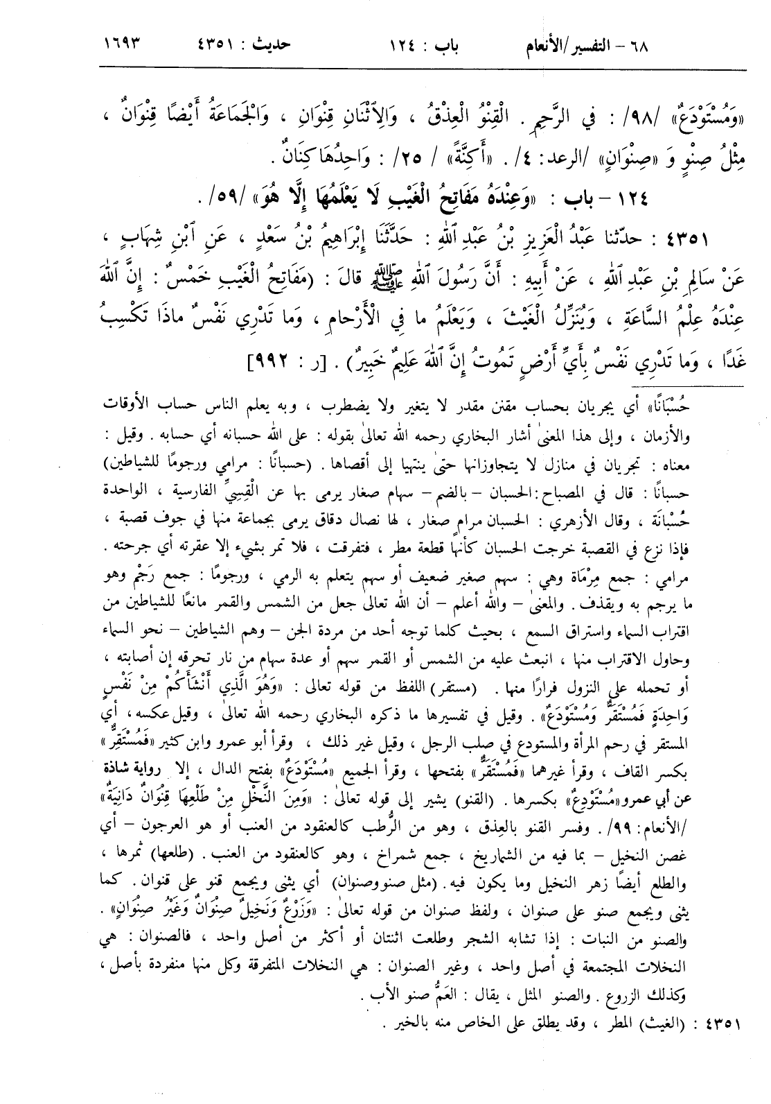 4351 - حدثنا عبد العزيز بن عبد الله حدثنا إبراهيم بن سعد عن ابن شهاب عن سالم بن عبد الله عن أبيه