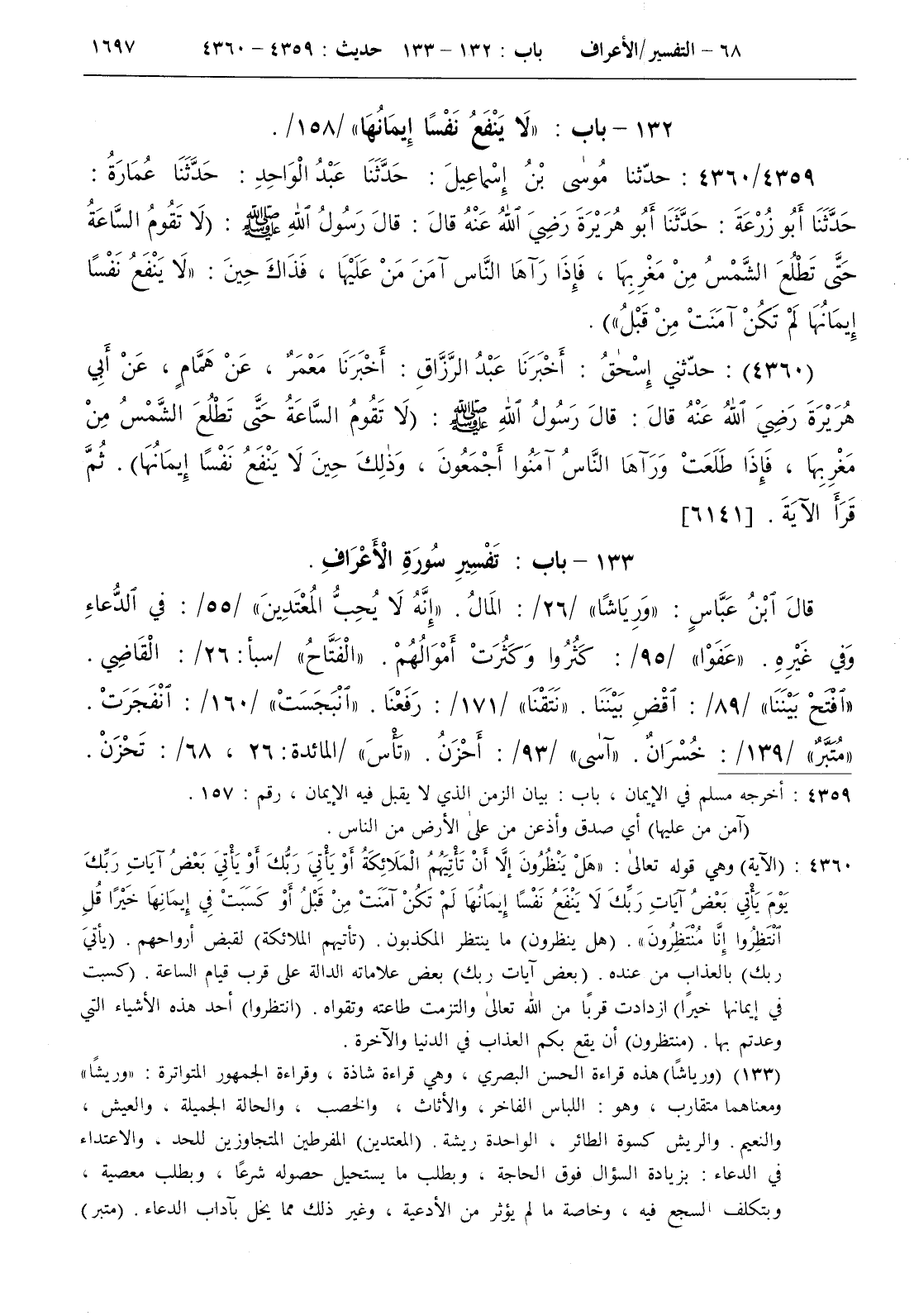 [ ش أخرجه مسلم في الإيمان باب بيان الزمن الذي لا يقبل فيه الإيمان رقم 157