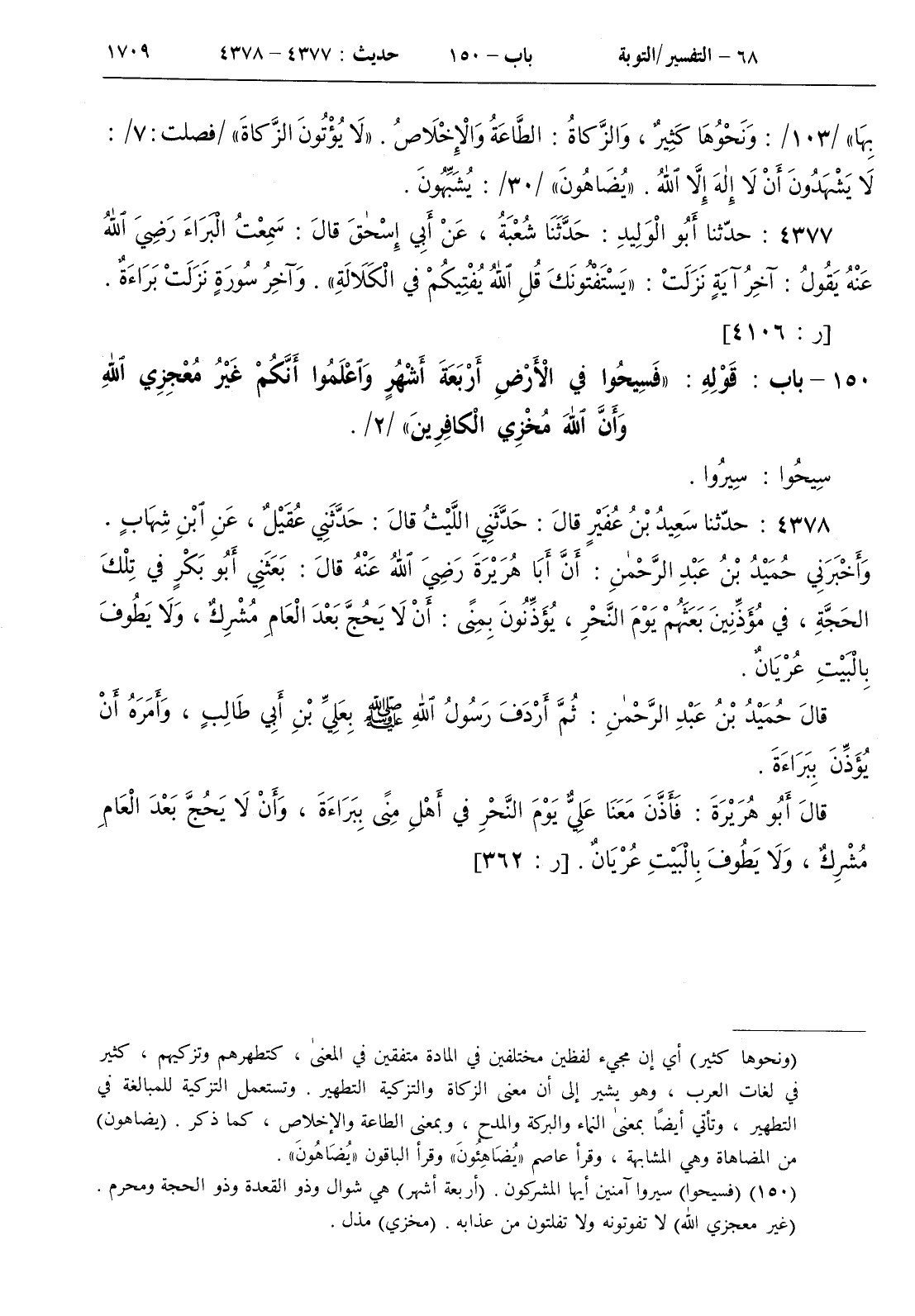 150 - باب قوله { فسيحوا في الأرض أربعة أشهر واعلموا أنكم غير معجزي الله وأن الله مخزي الكافرين } / 2 /