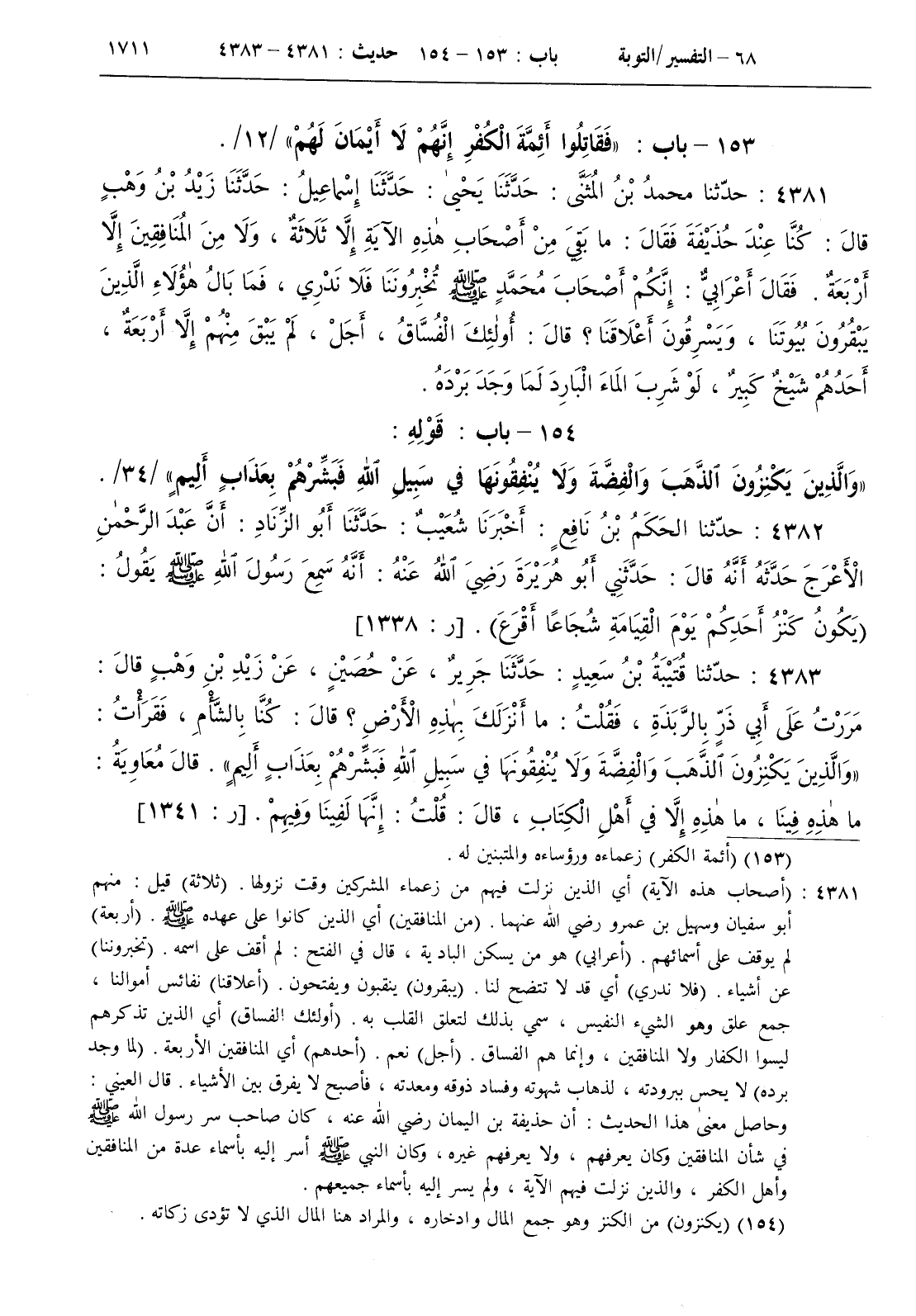 154 - باب قوله { والذين يكنزون الذهب والفضة ولا ينفقونها في سبيل الله فبشرهم بعذاب أليم } / 34 /