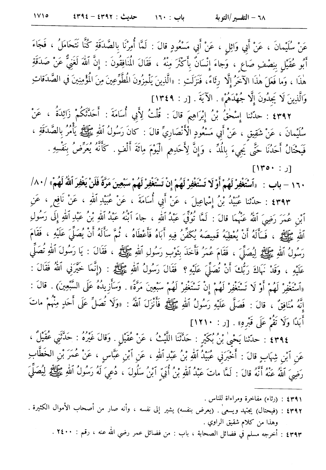 160 - باب { استغفر لهم أو لا تستغفر لهم إن تستغفر لهم سبعين مرة فلن يغفر الله لهم } / 80 /