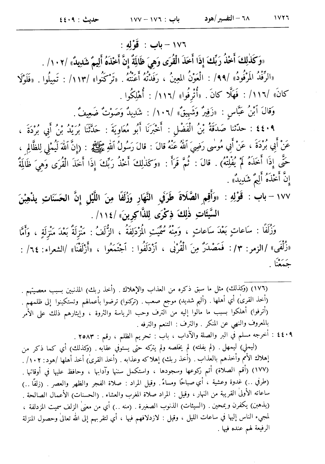 177 - باب قوله { وأقم الصلاة طرفي النهار وزلفا من الليل إن الحسنات يذهبن السيئات ذلك ذكرى للذاكرين } / 114 /