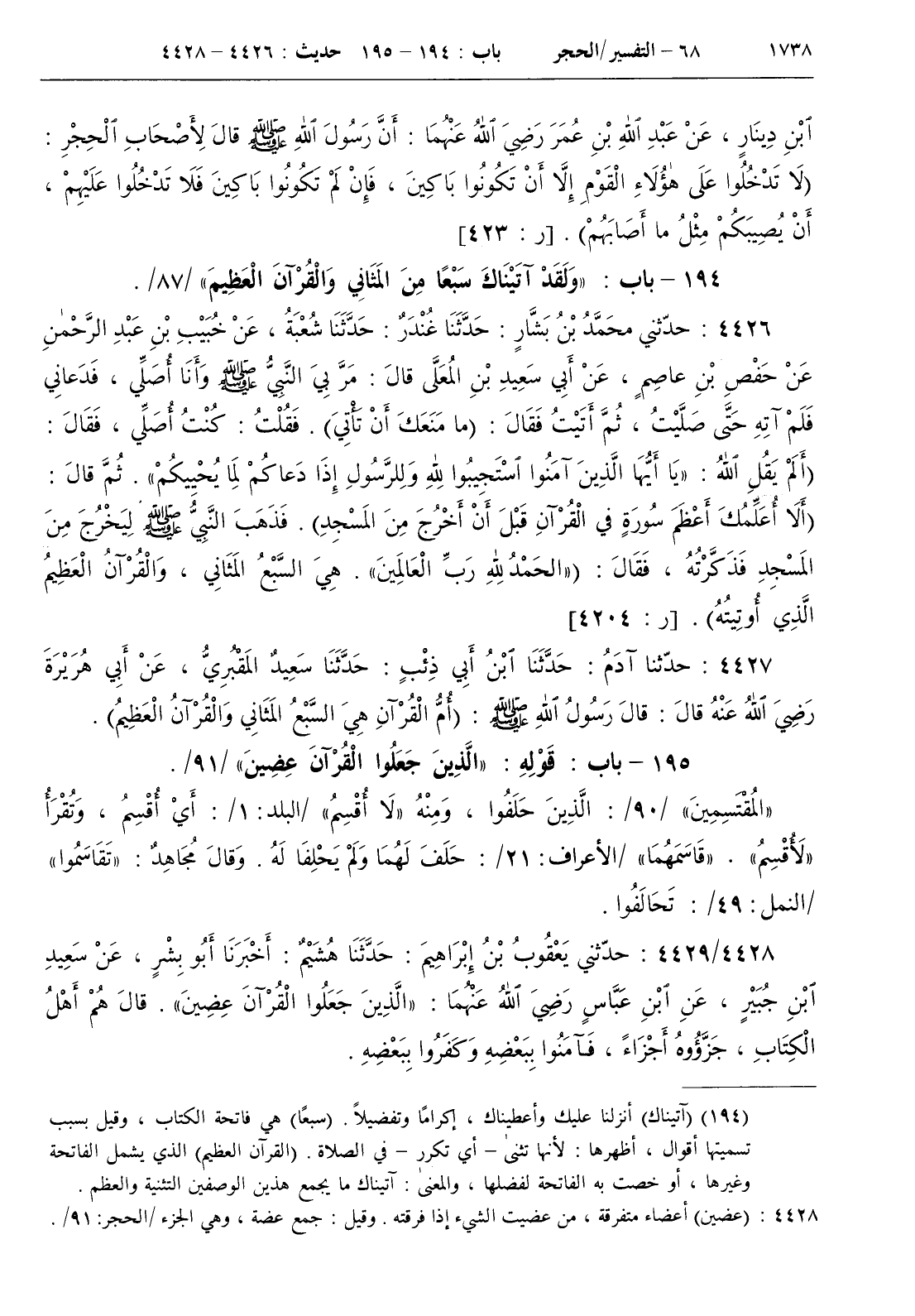 195 - باب قوله { الذين جعلوا القرآن عضين } / 91 /