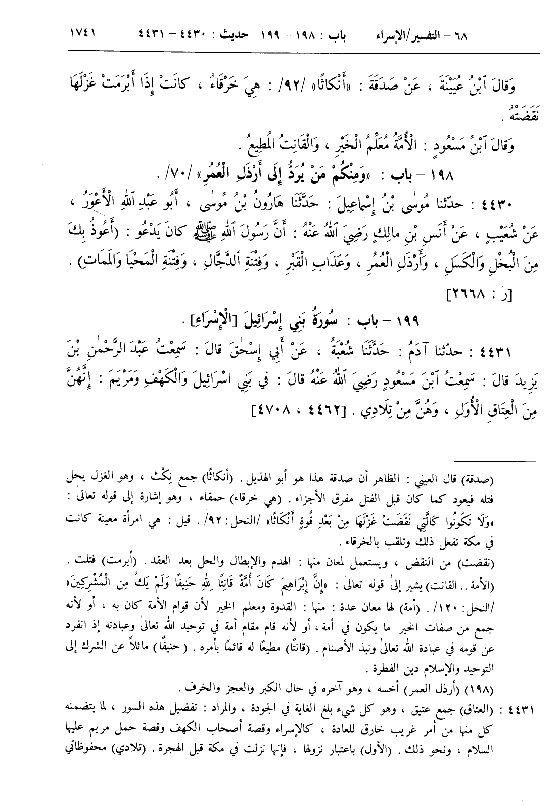 199 - باب سورة بني إسرائيل [ الإسراء ]