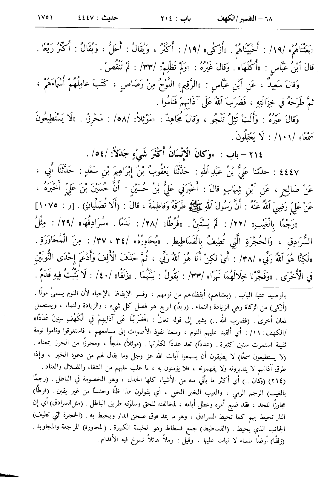 215 - باب { وإذا قال موسى لفتاه لا أبرح حتى أبلغ مجمع البحرين أو أمضي حقبا } / 60 / زمانا وجمعه أحقاب