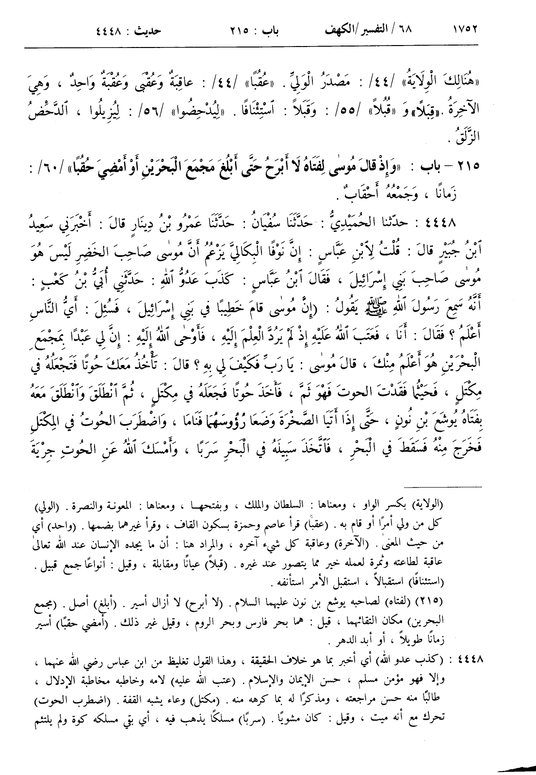 216 - باب { فلما بلغا مجمع بينهما نسيا حوتهما فاتخذ سبيله في البحر سربا } / 61 /