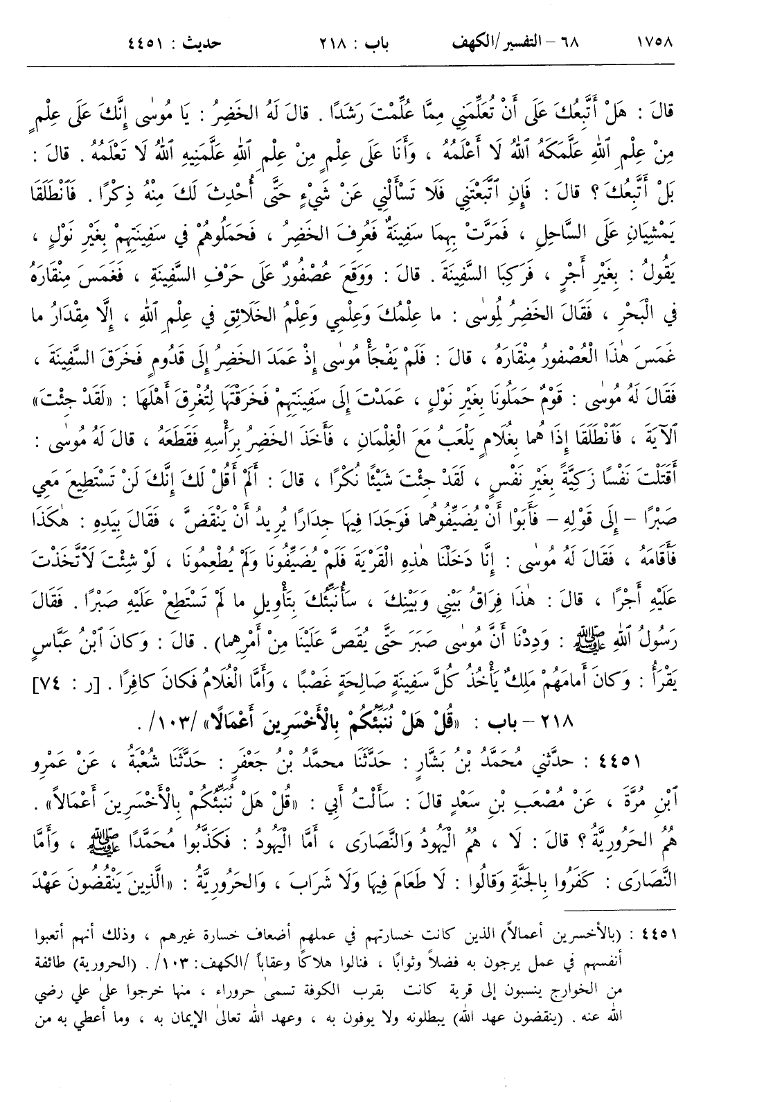 219 - باب { أولئك الذين كفروا بآيات ربهم ولقائه فحبطت أعمالهم } . الآية / 105 /