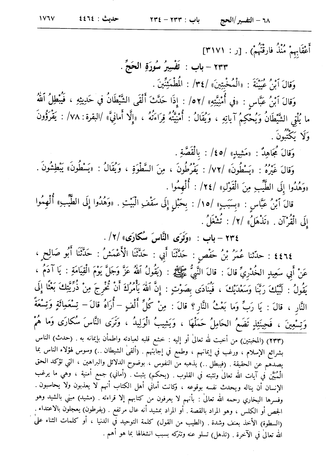235 - باب { ومن الناس من يعبد الله على حرف فإن أصابه خير اطمأن به وإن أصابته فتنة انقلب على وجهه خسر الدنيا والآخرة }