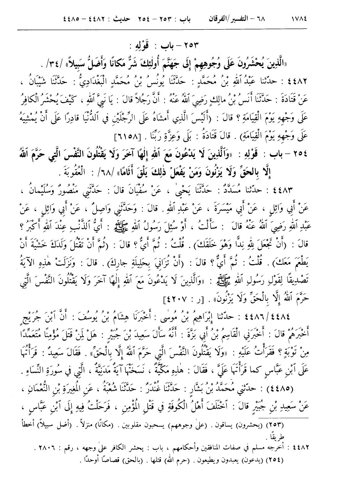 254 - باب قوله { والذين لا يدعون مع الله إلها آخر ولا يقتلون النفس التي حرم الله إلا بالحق ولا يزنون ومن يفعل ذلك يلق أثاما } / 68 / العقوبة