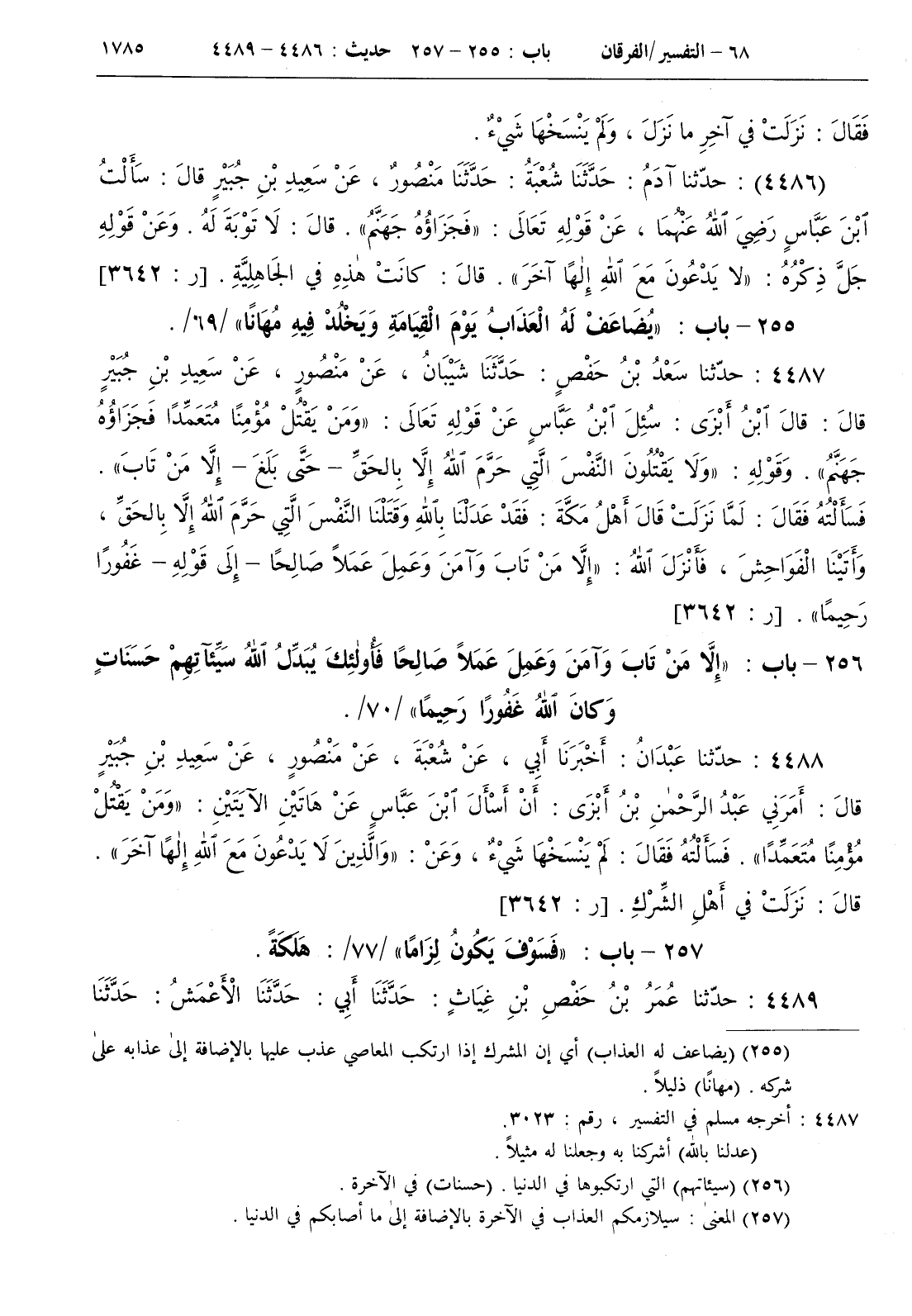 256 - باب { إلا من تاب وآمن وعمل عملا صالحا فأولئك يبدل الله سيئاتهم حسنات وكان الله غفورا رحيما } / 70 /