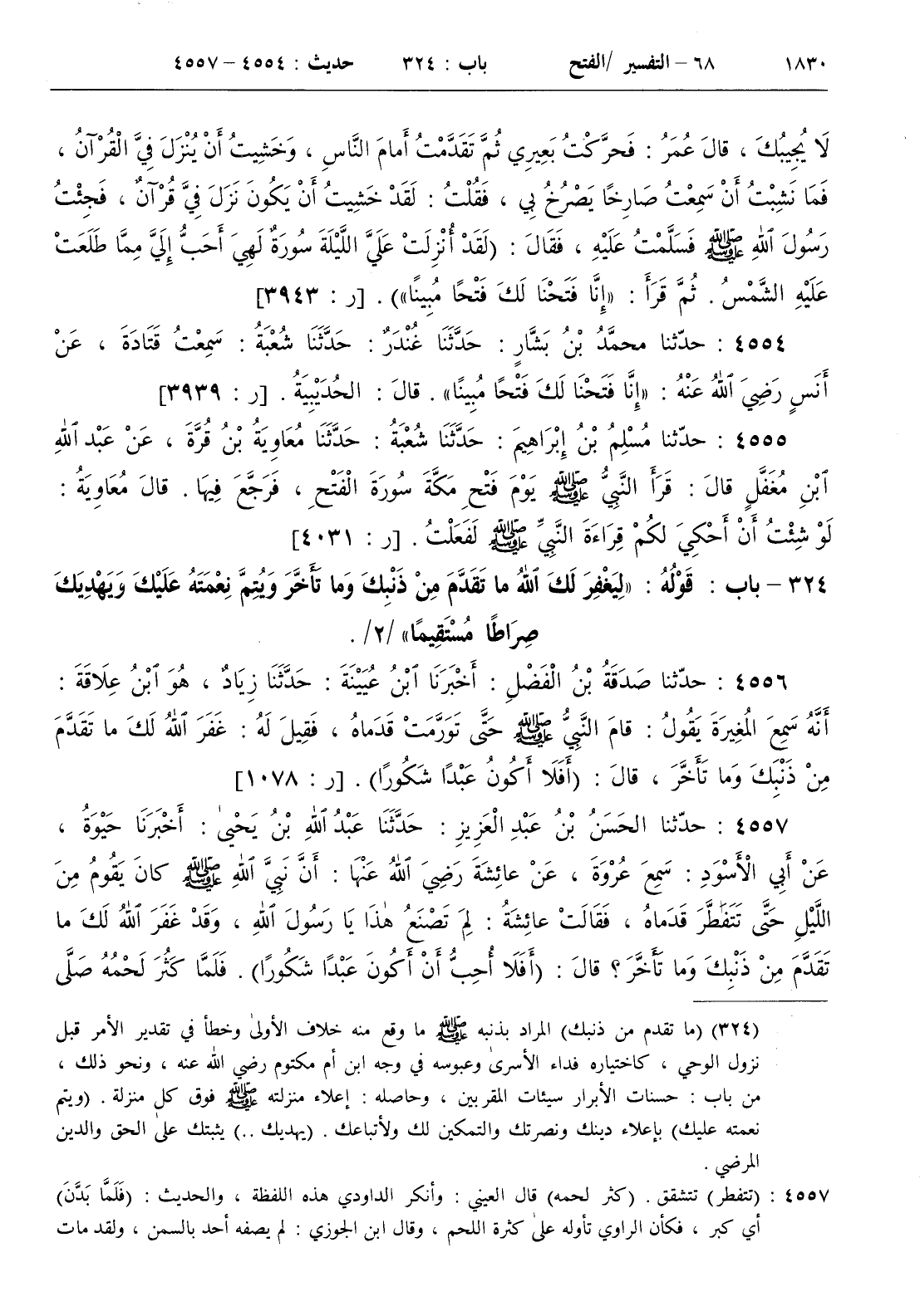 324 - باب قوله { ليغفر لك الله ما تقدم من ذنبك وما تأخر ويتم نعمته عليك ويهديك صراطا مستقيما } / 2 /