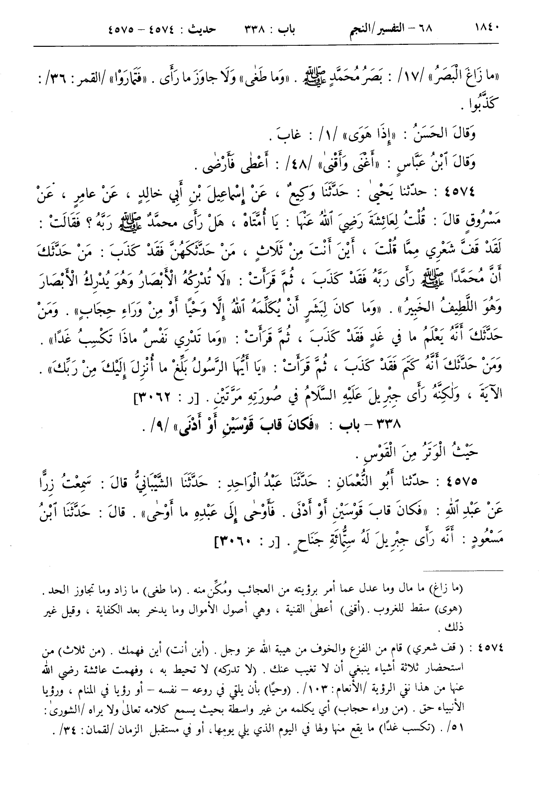 338 - باب { فكان قاب قوسين أو أدنى } / 9 / . حيث الوتر من القوس . ؟ ؟