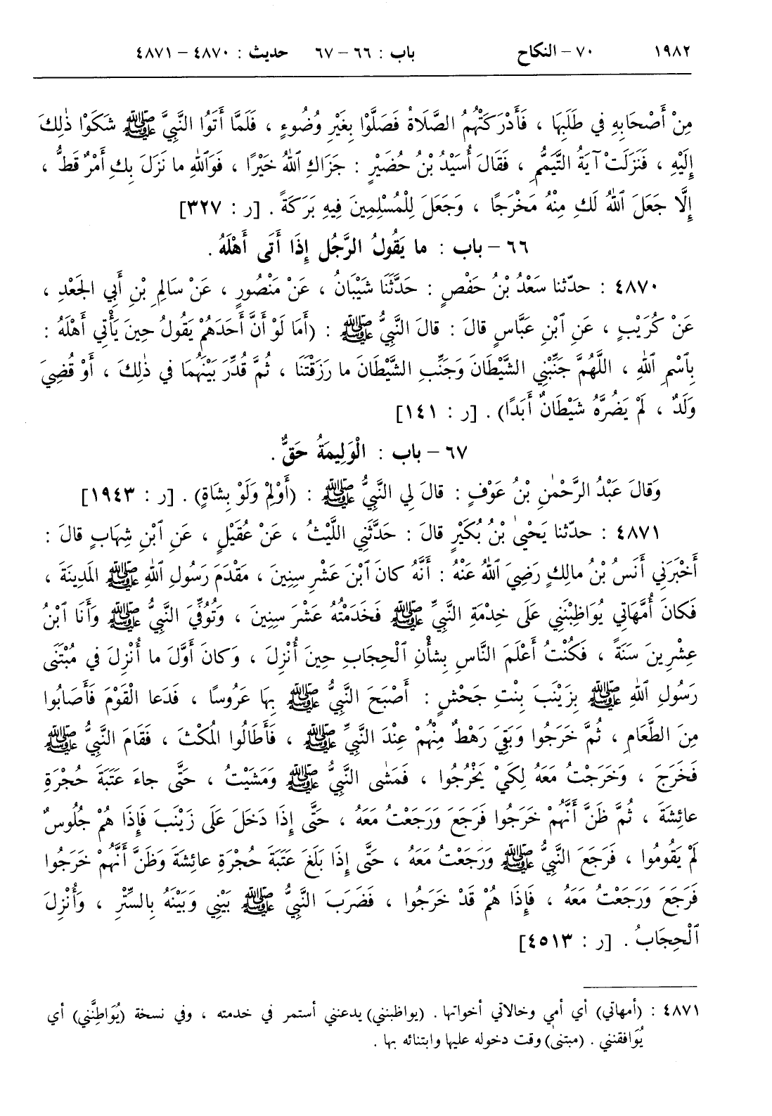 وقال عبد الرحمن بن عوف قال لي النبي صلى الله عليه و سلم ( أولم ولو بشاة )
