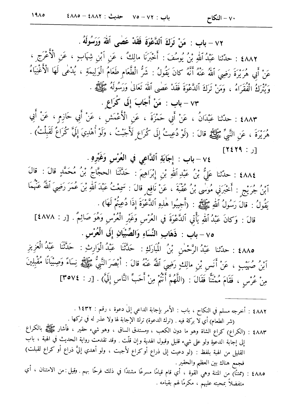 75 - باب ذهاب النساء والصبيان إلى العرس