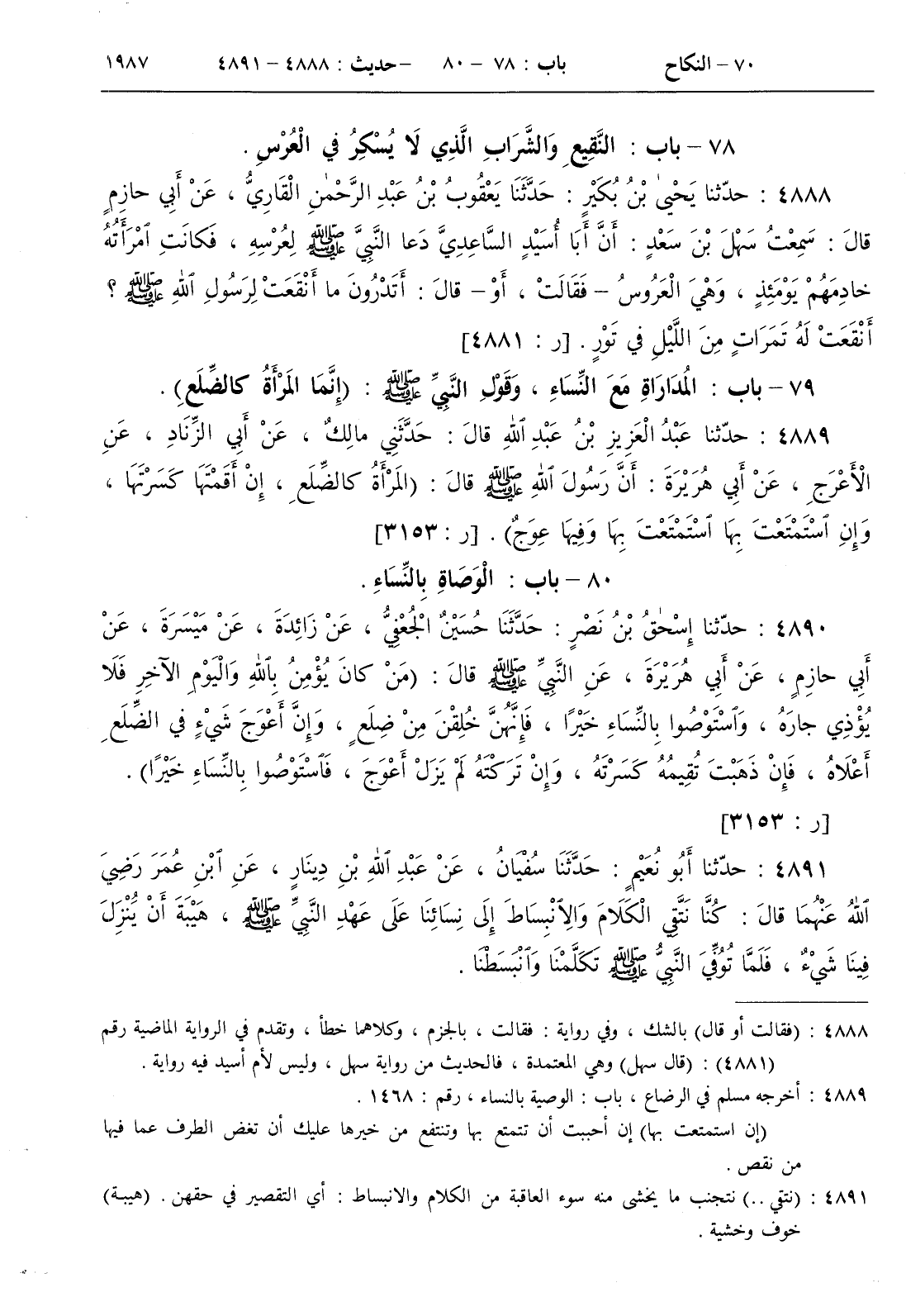 79 - باب المداراة مع النساء وقول النبي صلى الله عليه و سلم ( إنما المرأة كالضلع )