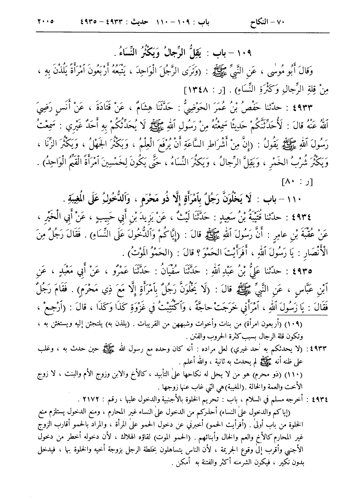 110 - باب لا يخلون رجل بامرأة إلا ذو محرم والدخول على المغيبة