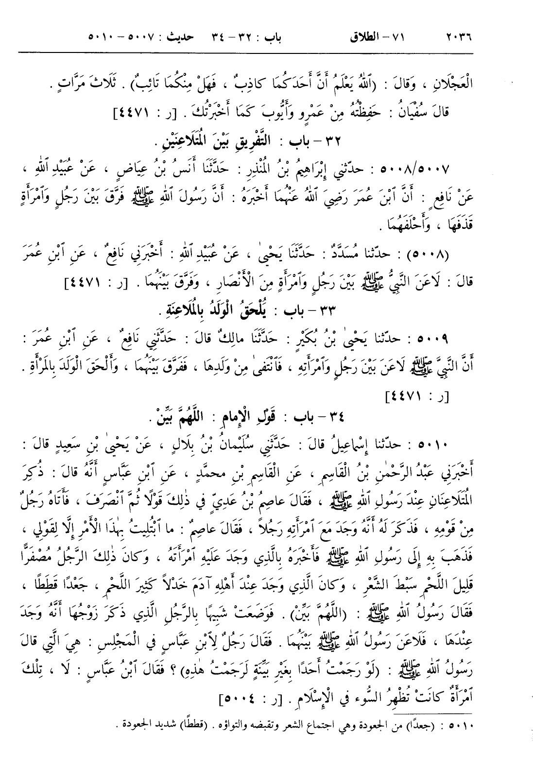 : لاعن النبي صلى الله عليه و سلم بين رجل وامرأة من الأنصار وفرق بينهما