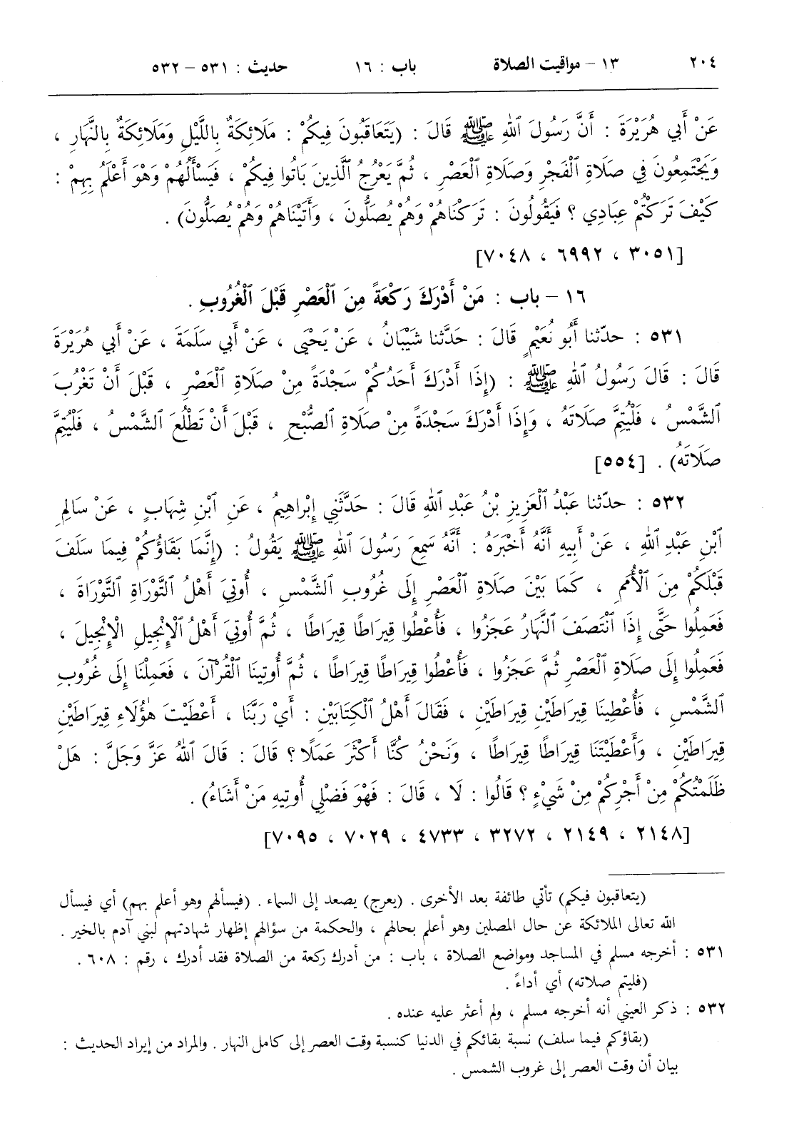 : ( إذا أدرك أحدكم سجدة من صلاة العصر قبل أن تغرب الشمس فليتم صلاته وإذا أدرك سجدة من صلاة الصبح قبل أن تطلع الشمس فليتم صلاته )
