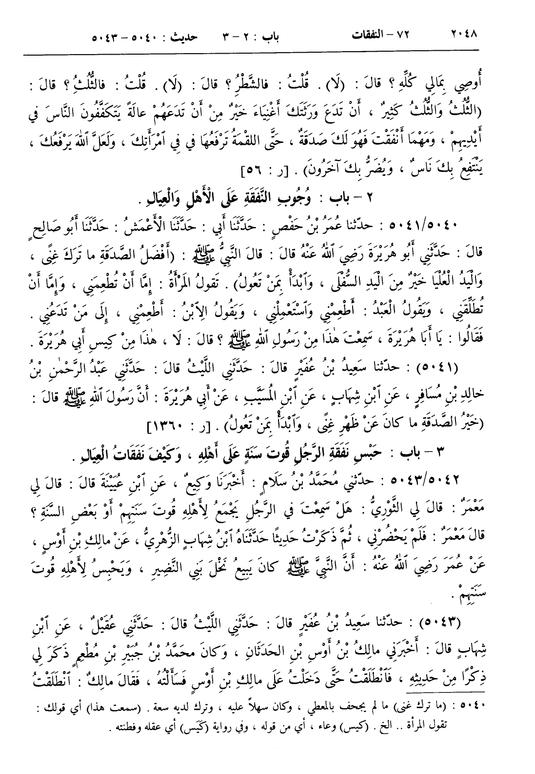 : قال النبي صلى الله عليه و سلم ( أفضل الصدقة ما ترك غنى واليد العليا خير من اليد السفلى وابدأ بمن تعول ) . تقول المرأة إما أن تطعمني وإما أن تطلقني ويقول العبد أطعمني واستعملني ويقول الابن اطعمني إلى أن تدعني . فقالوا يا أبا هريرة سمعت هذا من رسول الله صلى الله عليه و سلم ؟ قال لا هذا من كيس أبي هريرة