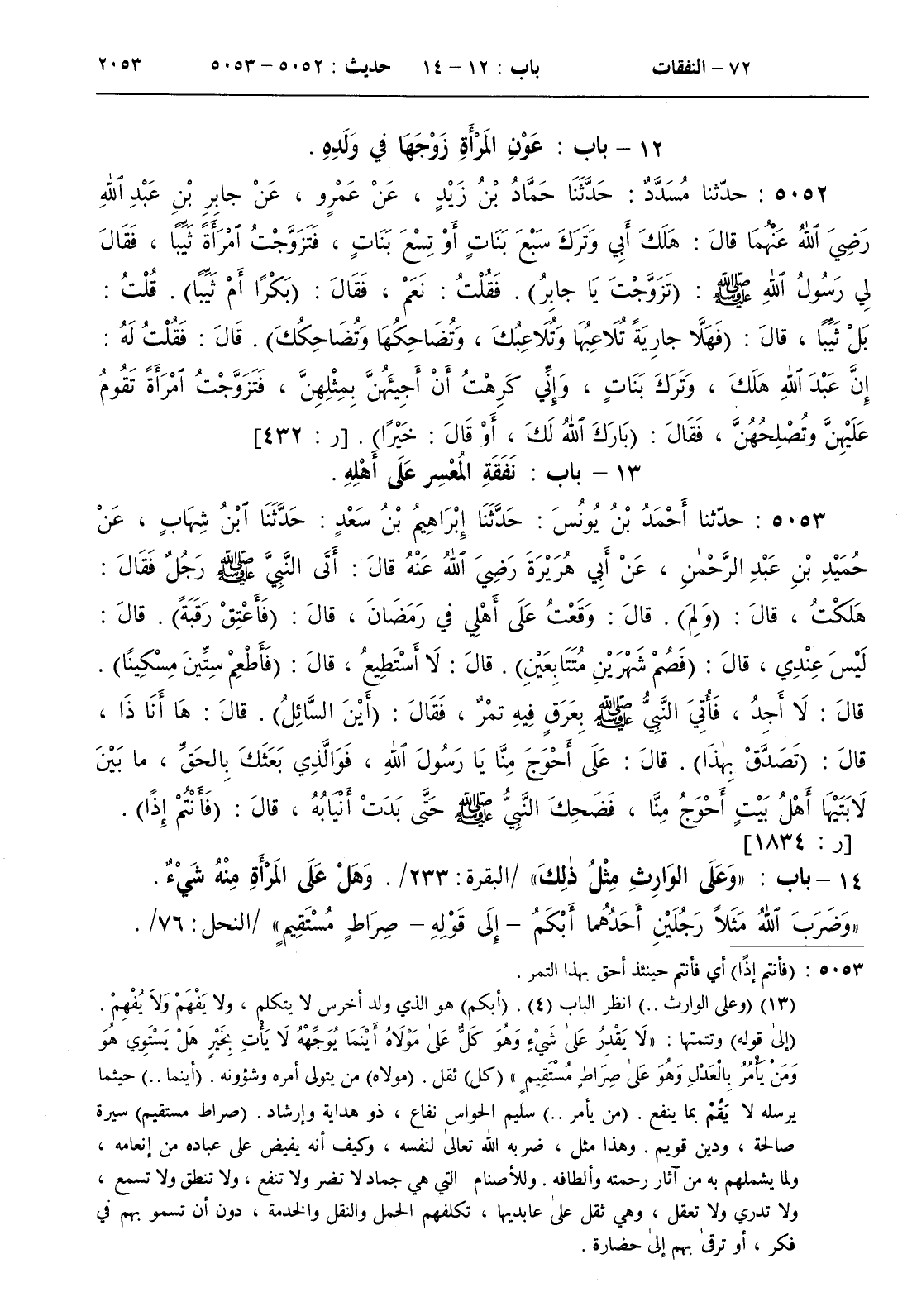 14 - باب { وعلى الوارث مثل ذلك } / البقرة 233 / وهل على المرأة منه شيء