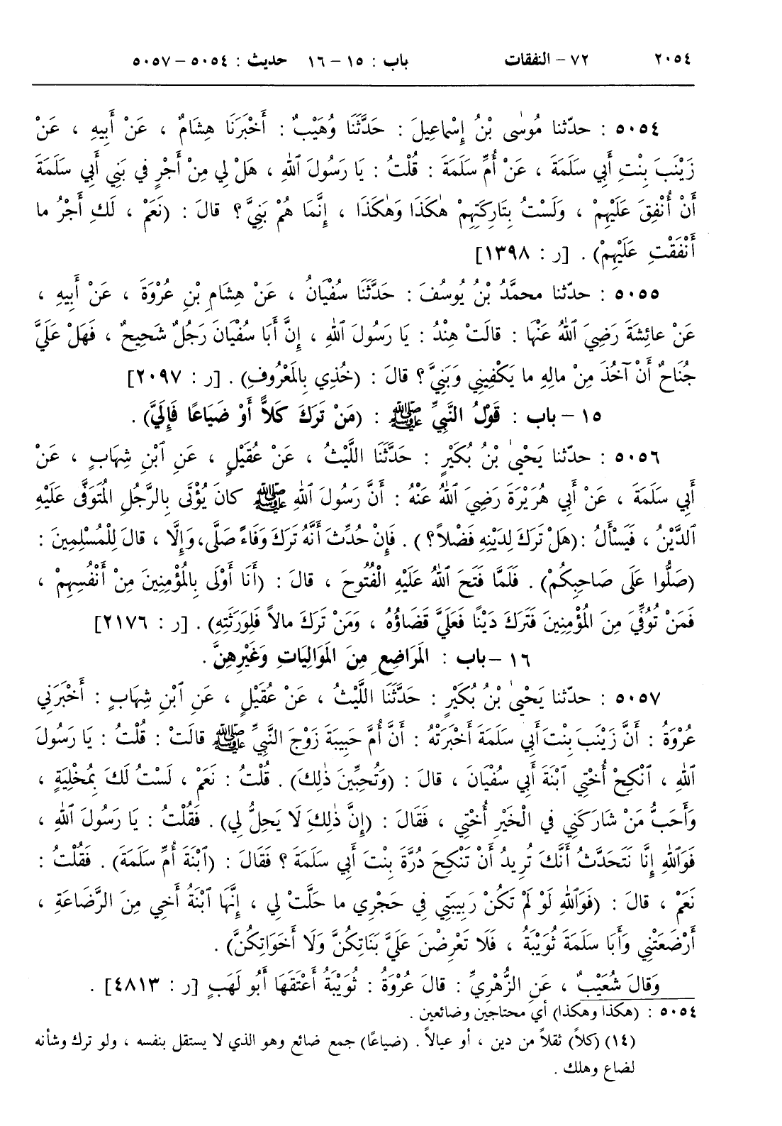 5057 - حدثنا يحيى بن كثير حدثنا الليث عن عقيل عن ابن شهاب أخبرني عروة أن زينب بنت أبي سلمة أخبرته