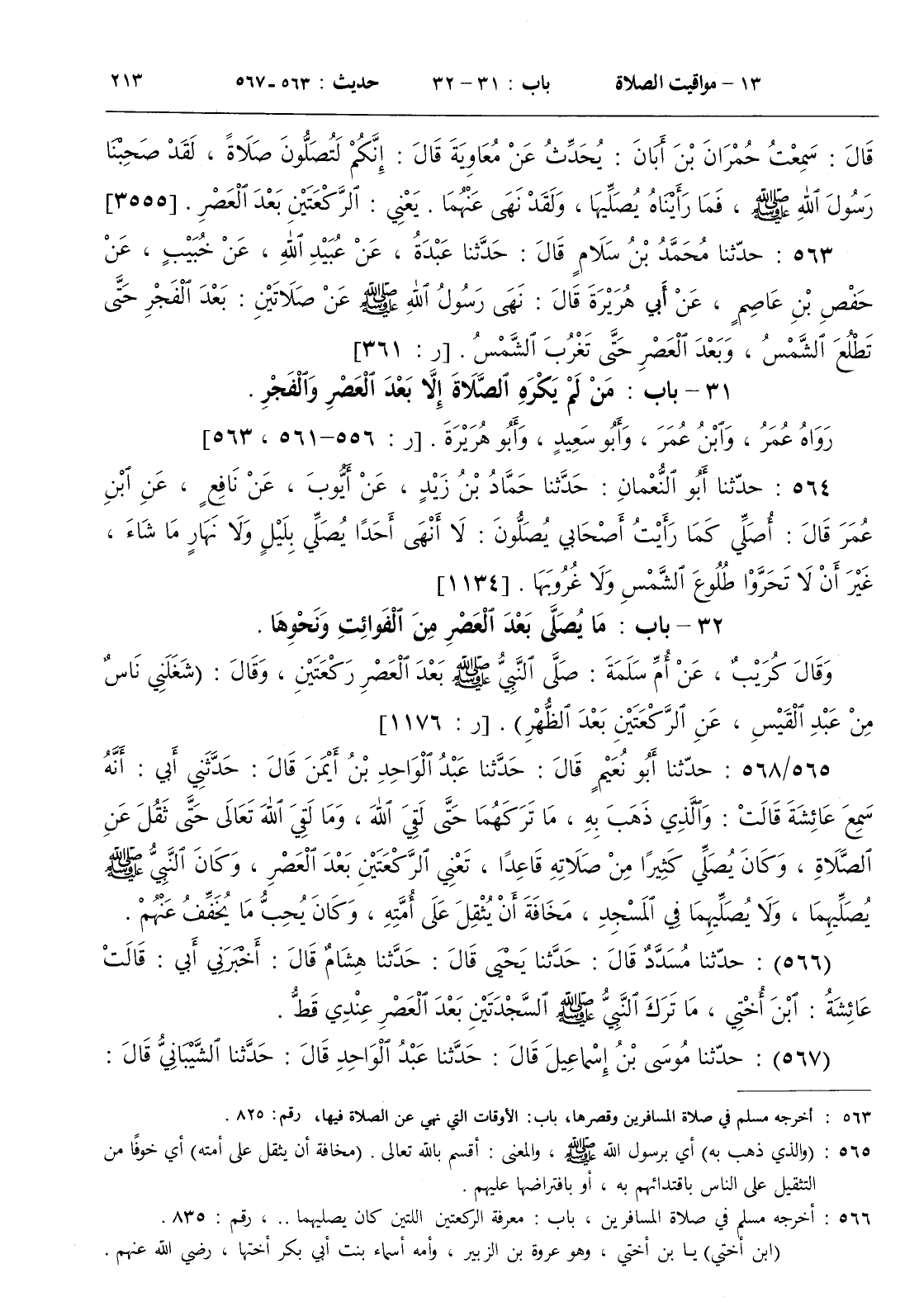 31 - باب من لم يكره الصلاة إلا بعد العصر والفجر