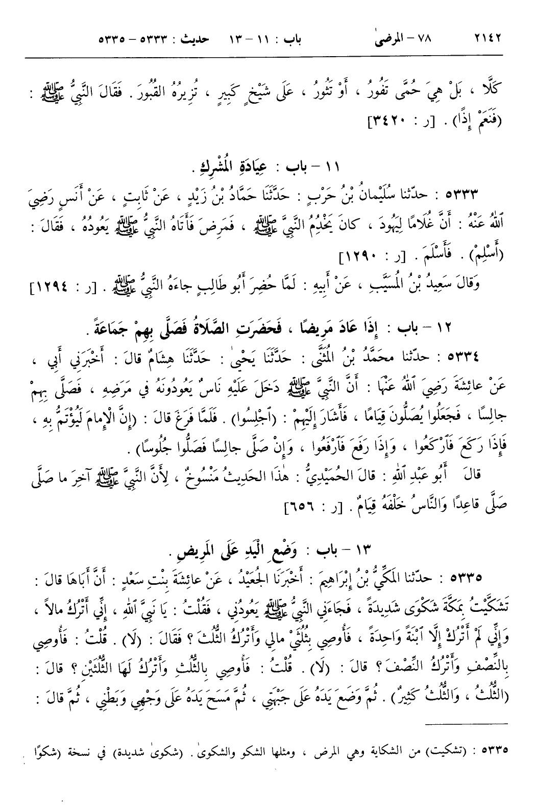 12 - باب إذا عاد مريضا فحضرت الصلاة فصلى بهم جماعة