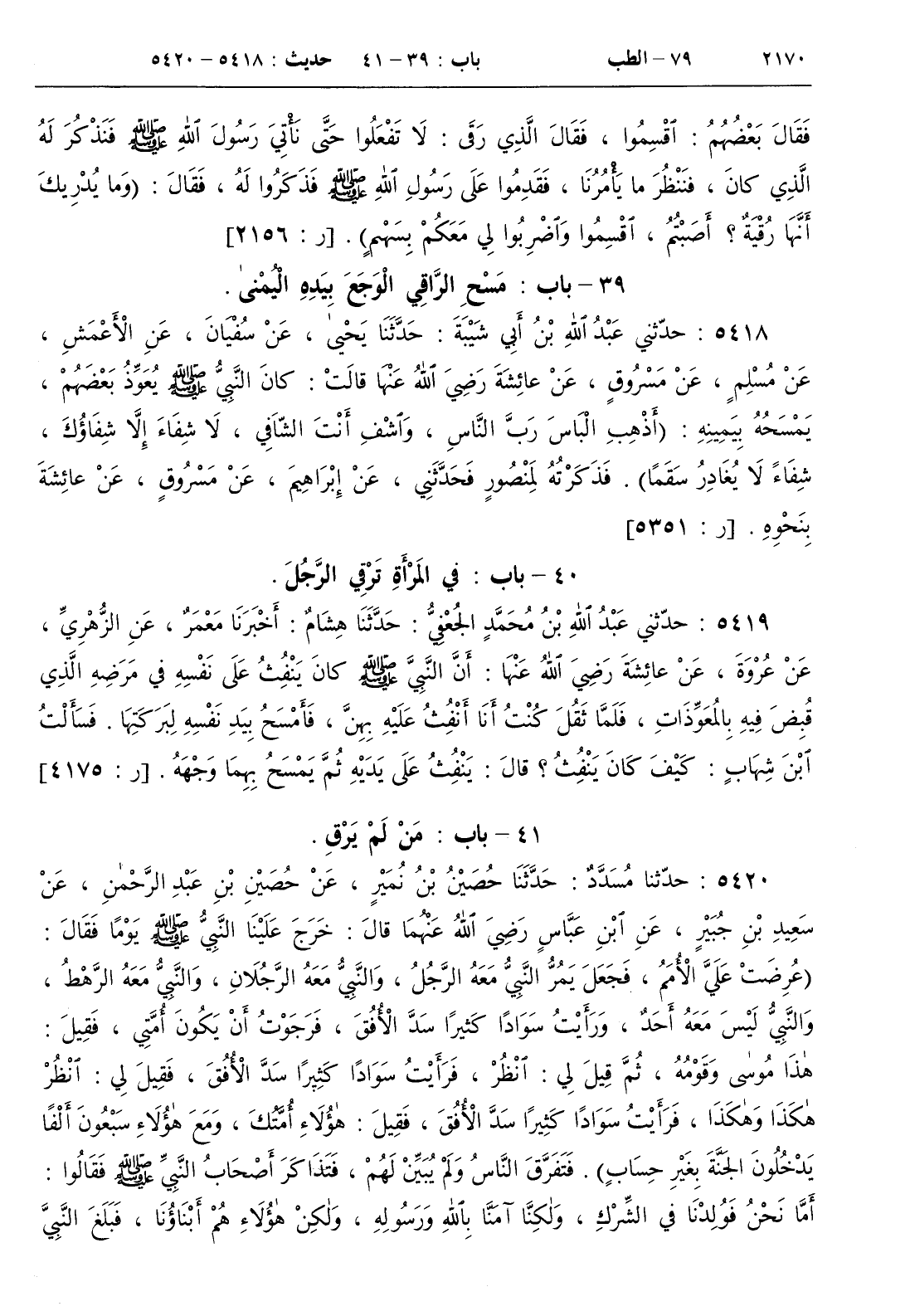 5420 - حدثنا مسدد حدثنا حصين بن نمير عن حصين بن عبد الرحمن عن سعيد بن جبير عن ابن عباس رضي الله عنهما قال