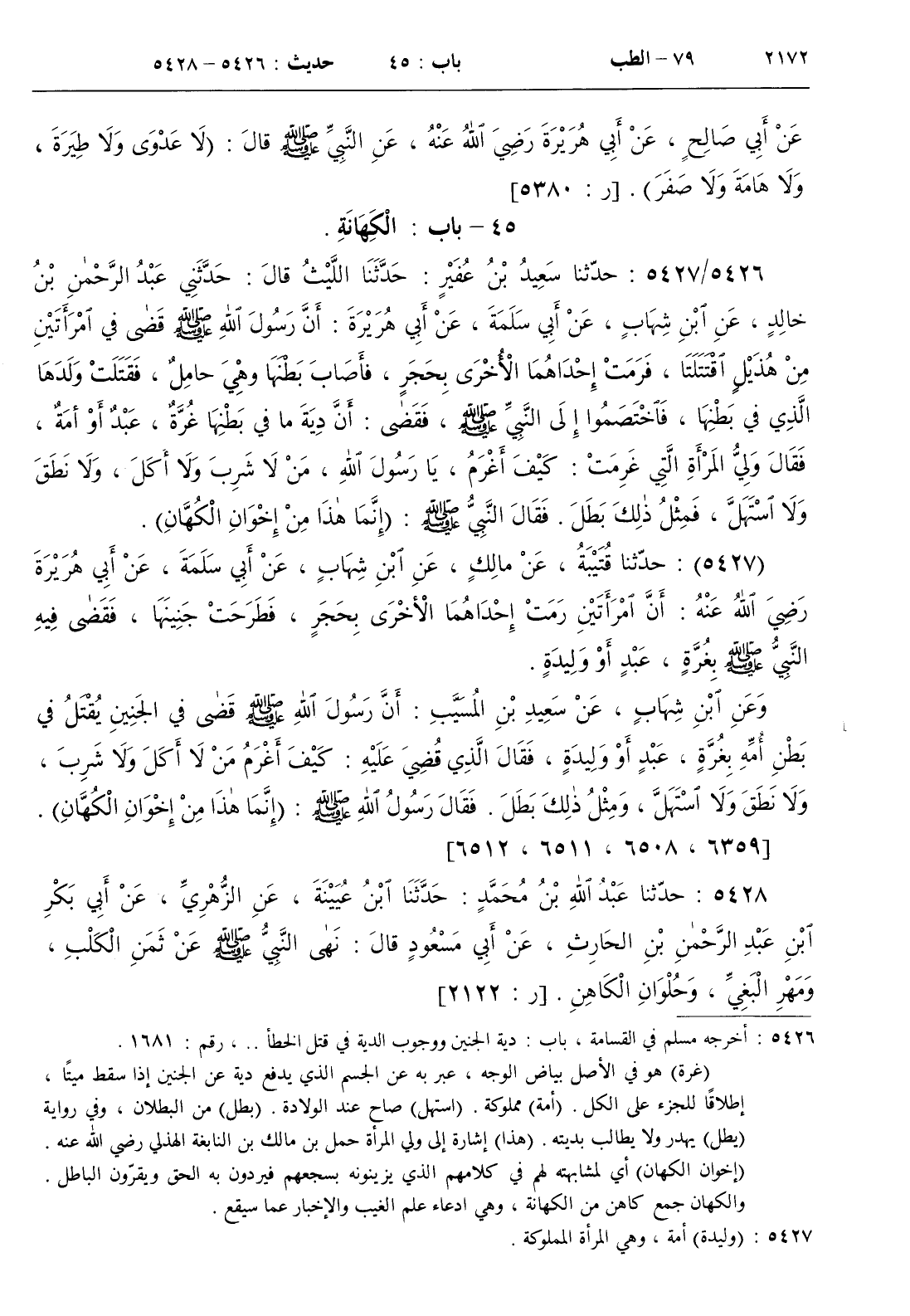 5426 - حدثنا سعيد بن عفير حدثنا الليث قال حدثني عبد الرحمن بن خالد عن ابن شهاب عن أبي سلمة عن أبي هريرة