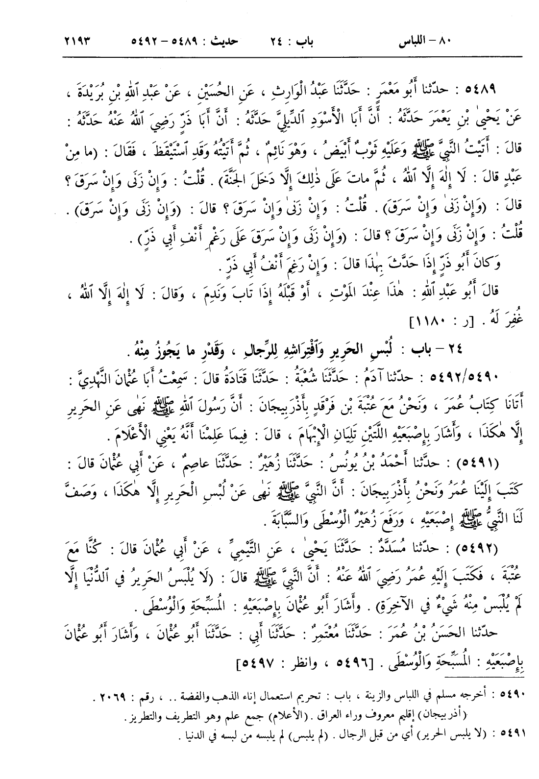 24 - باب لبس الحرير وافتراشه للرجال وقدر ما يجوز منه