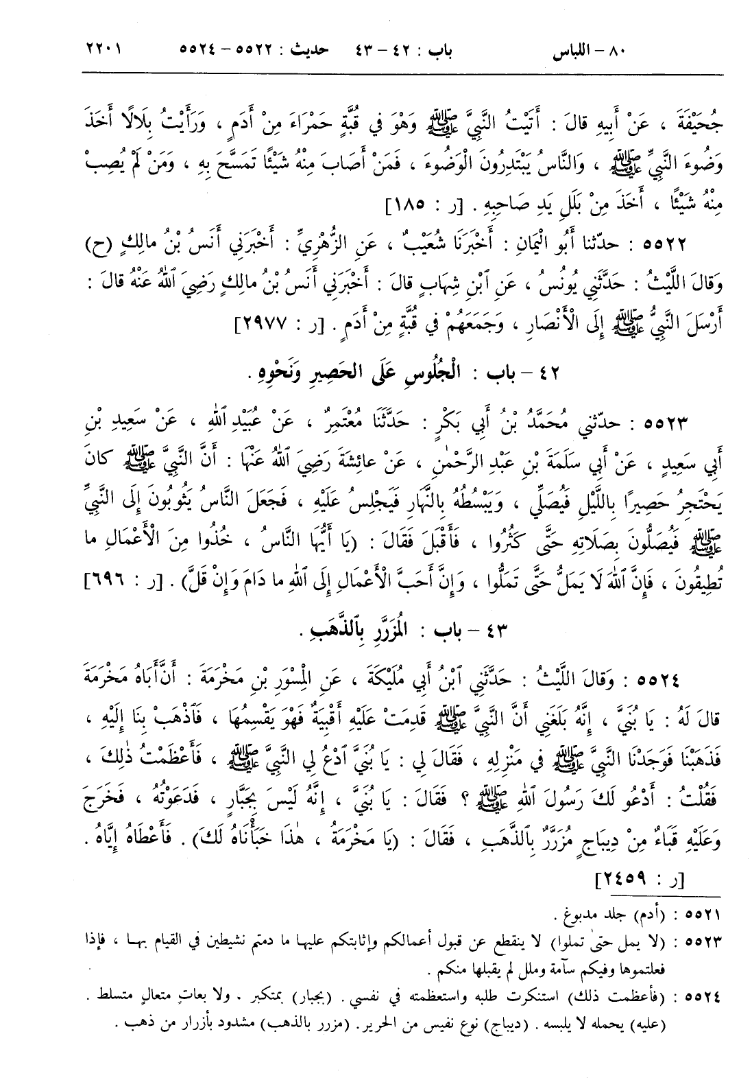 [ ش ( فأعظمت ذلك ) استنكرت طلبه واستعظمته في نفسي . ( بجبار ) بمتكبر ولا بعات متعال متسلط . ( عليه ) يحمله لا يلبسه . ( ديباج ) نوع نفيس من الحرير . ( مزرر بالذهب ) مشدود بأزرار من ذهب ]