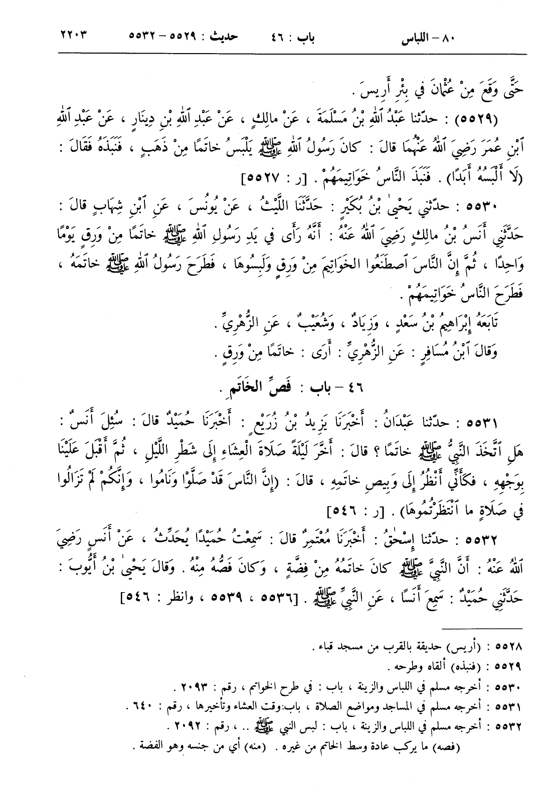 : أن النبي صلى الله عليه و سلم كان خاتمه من فضة وكان فصه منه . وقال يحيى بن أيوب حدثني حميد سمع أنسا عن النبي صلى الله عليه و سلم