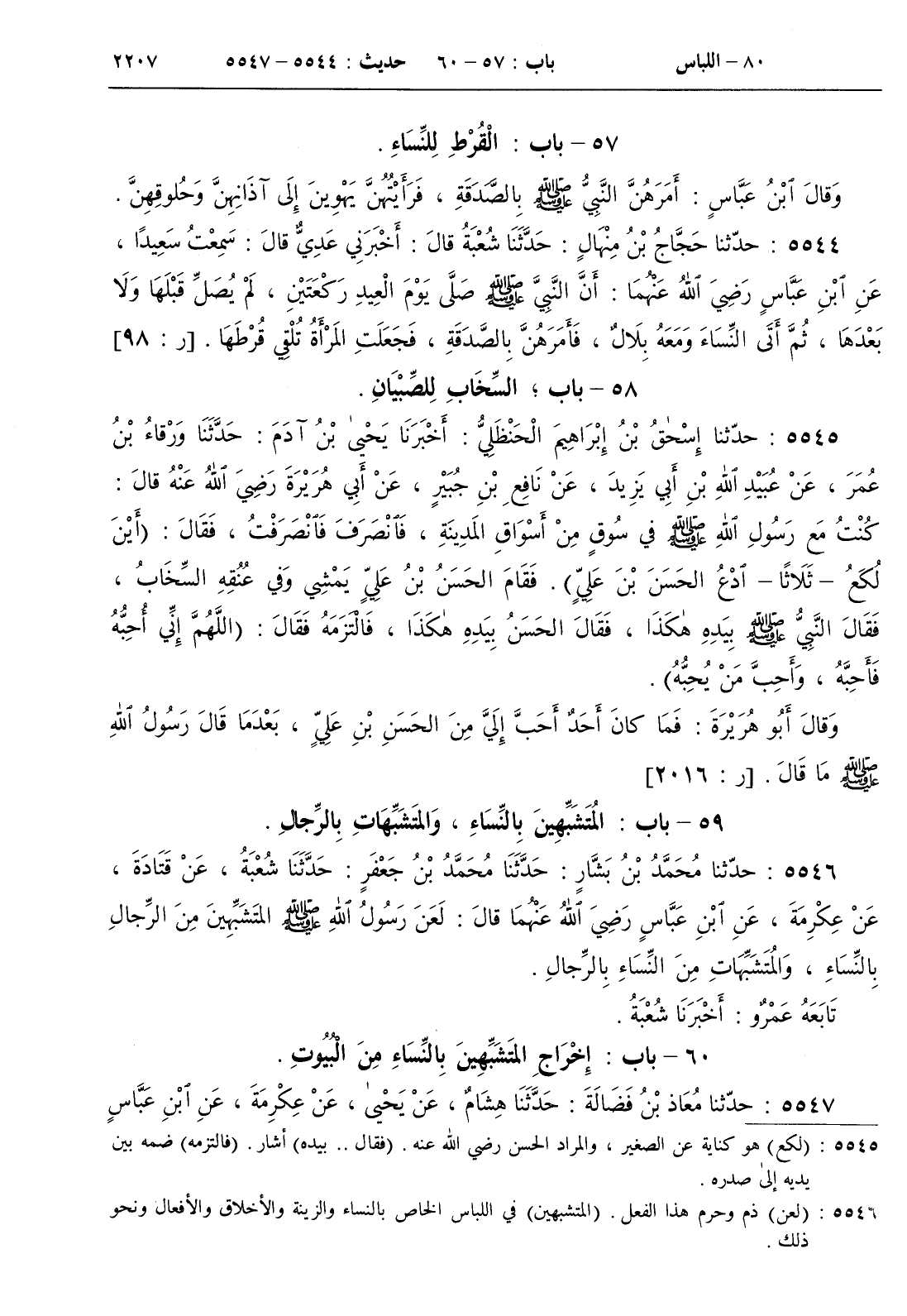 59 - باب المتشبهين بالنساء والمتشبهات بالرجال