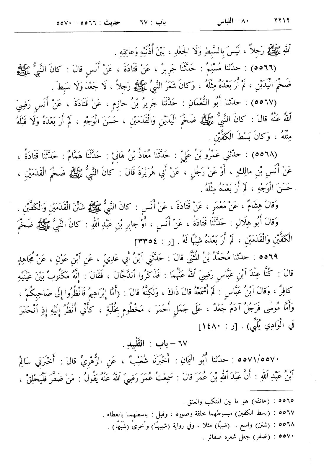 5567 - حدثنا أبو النعمان حدثنا جرير بن حازم عن قتادة عن أنس رضي الله عنه قال