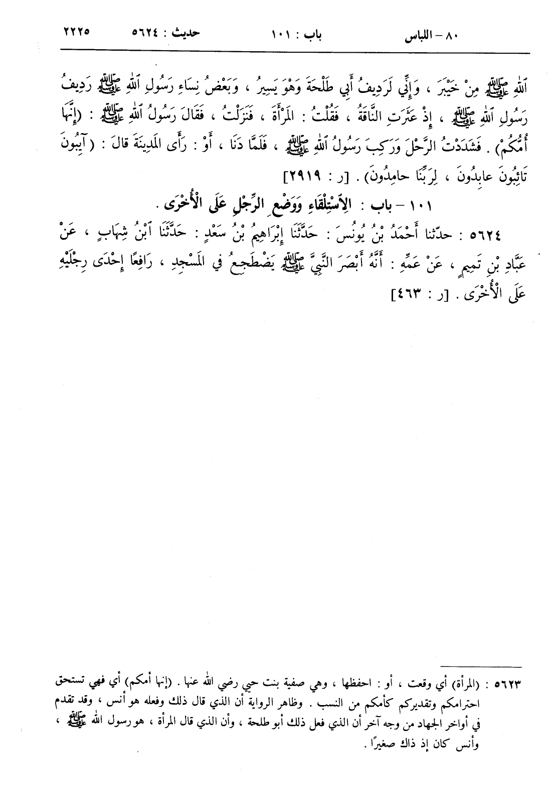 : أنه أبصر النبي صلى الله عليه و سلم يضطجع في المسجد رافعا إحدى رجليه على الأخرى