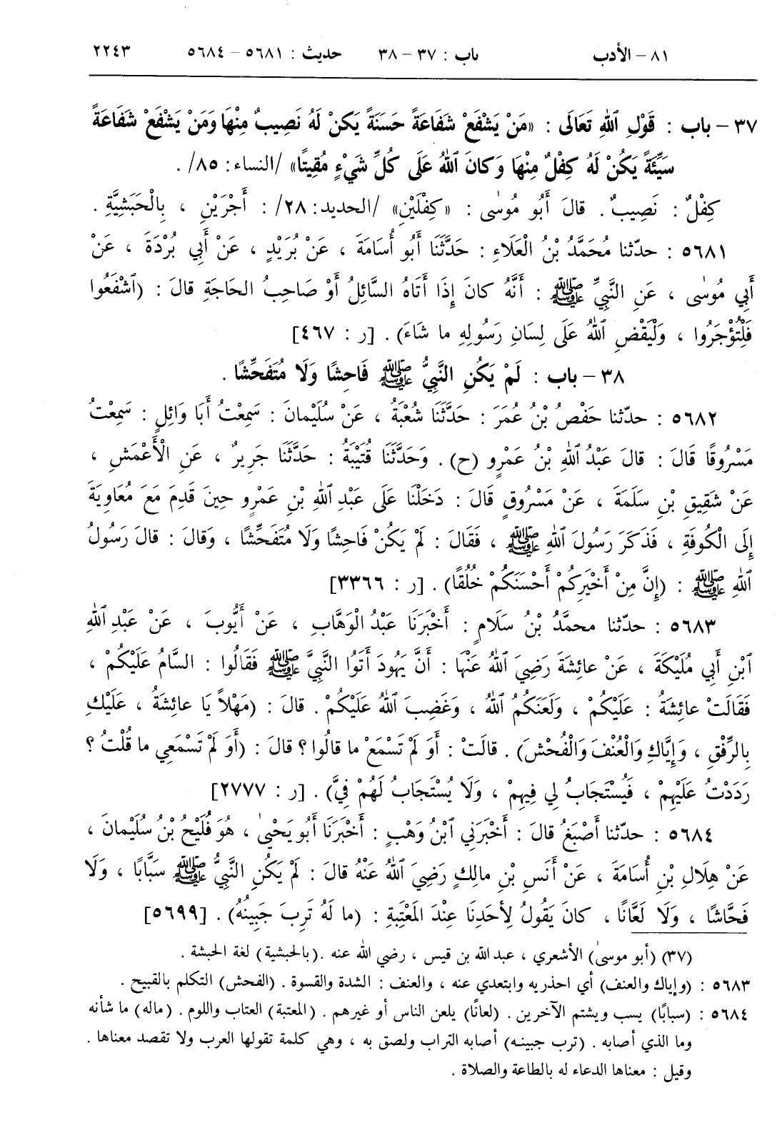 38 - باب لم يكن النبي صلى الله عليه و سلم فاحشا ولا متفحشا