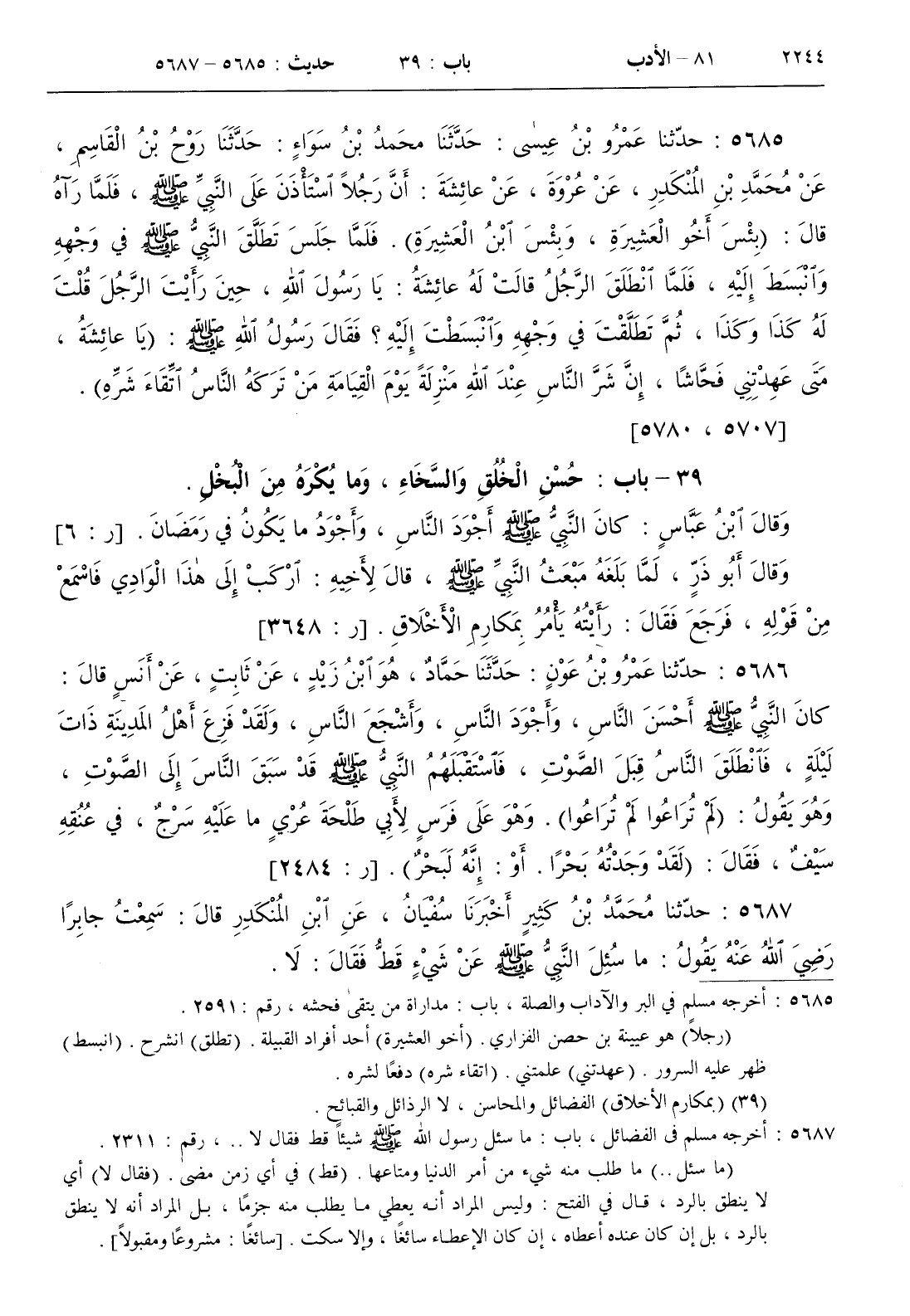 [ ش أخرجه مسلم في الفضائل باب ما سئل رسول الله صلى الله عليه و سلم شيئا قط فقال لا . . رقم 2311