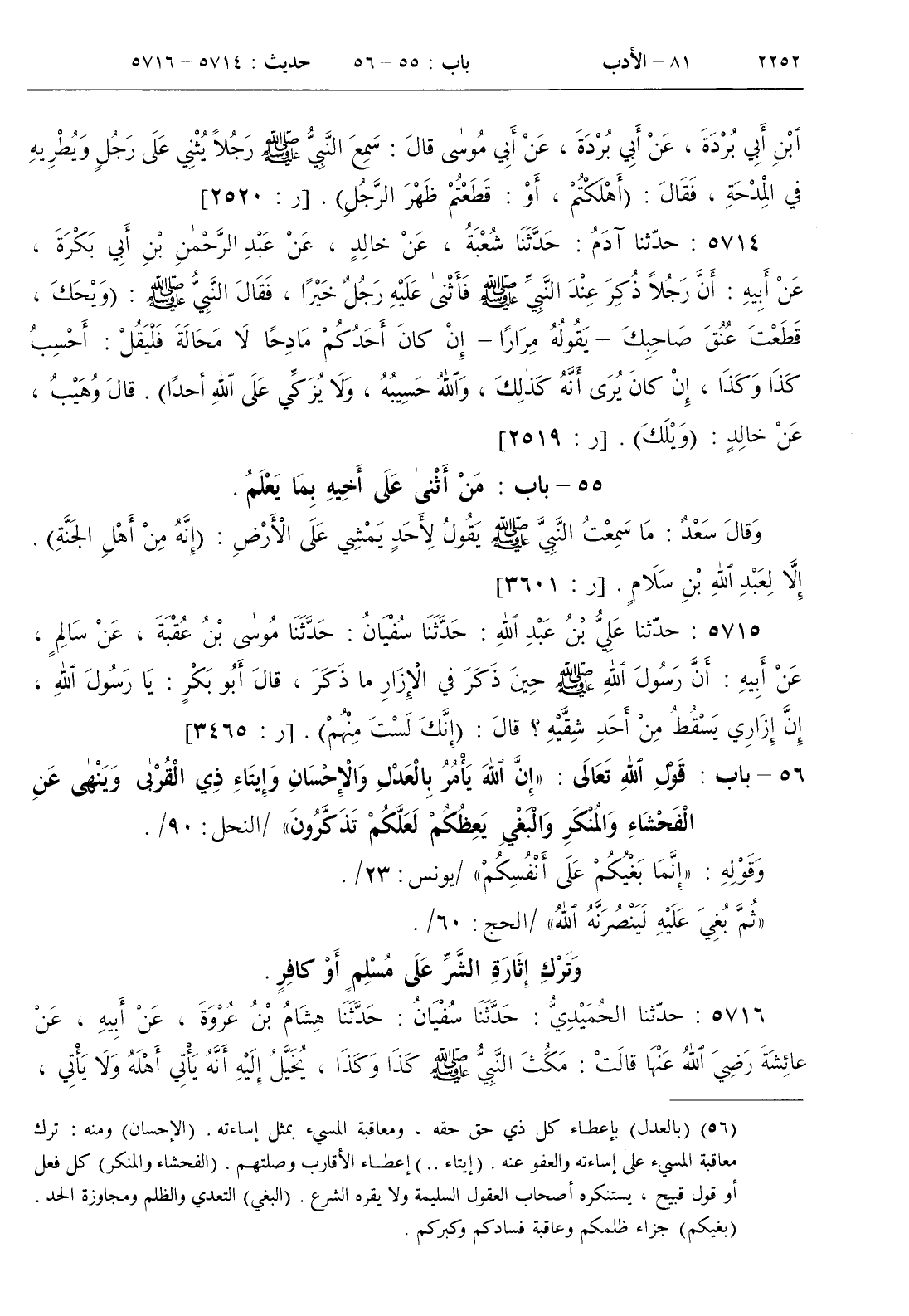 56 - باب قول الله تعالى { إن الله يأمر بالعدل والإحسان وإيتاء ذي القربى وينهى عن الفحشاء والمنكر والبغي يعظكم لعلكم تذكرون } / النحل 90 /