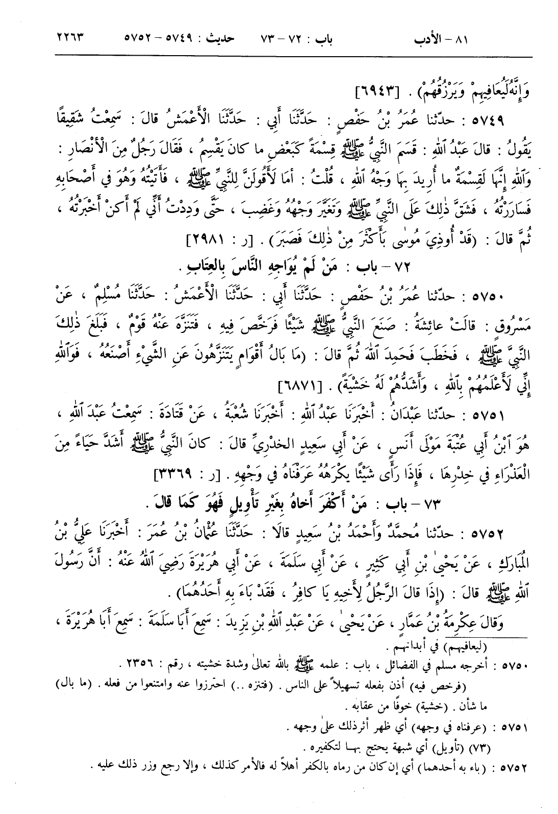 72 - باب من لم يواجه الناس بالعتاب