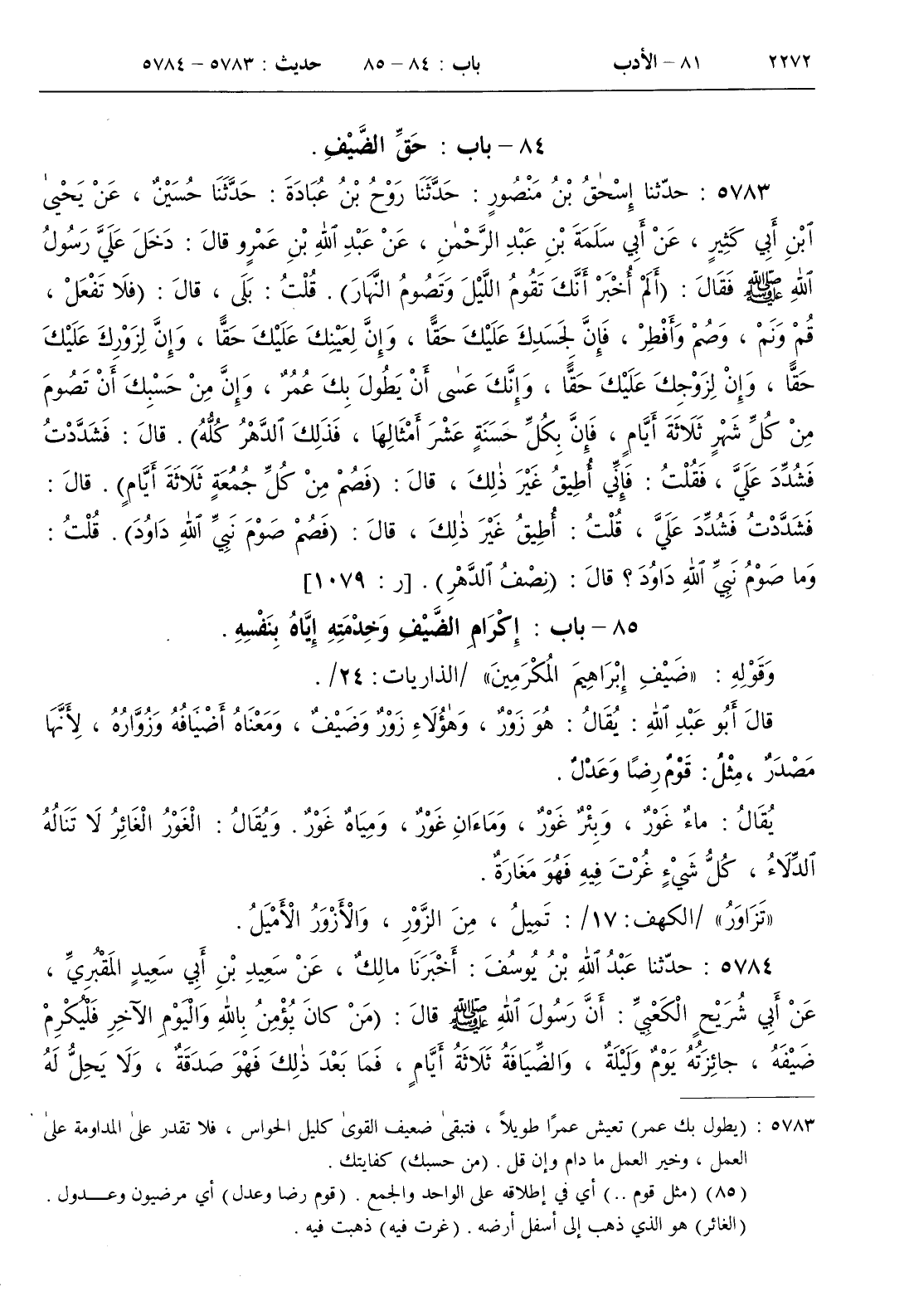 85 - باب إكرام الضيف وخدمته إياه بنفسه