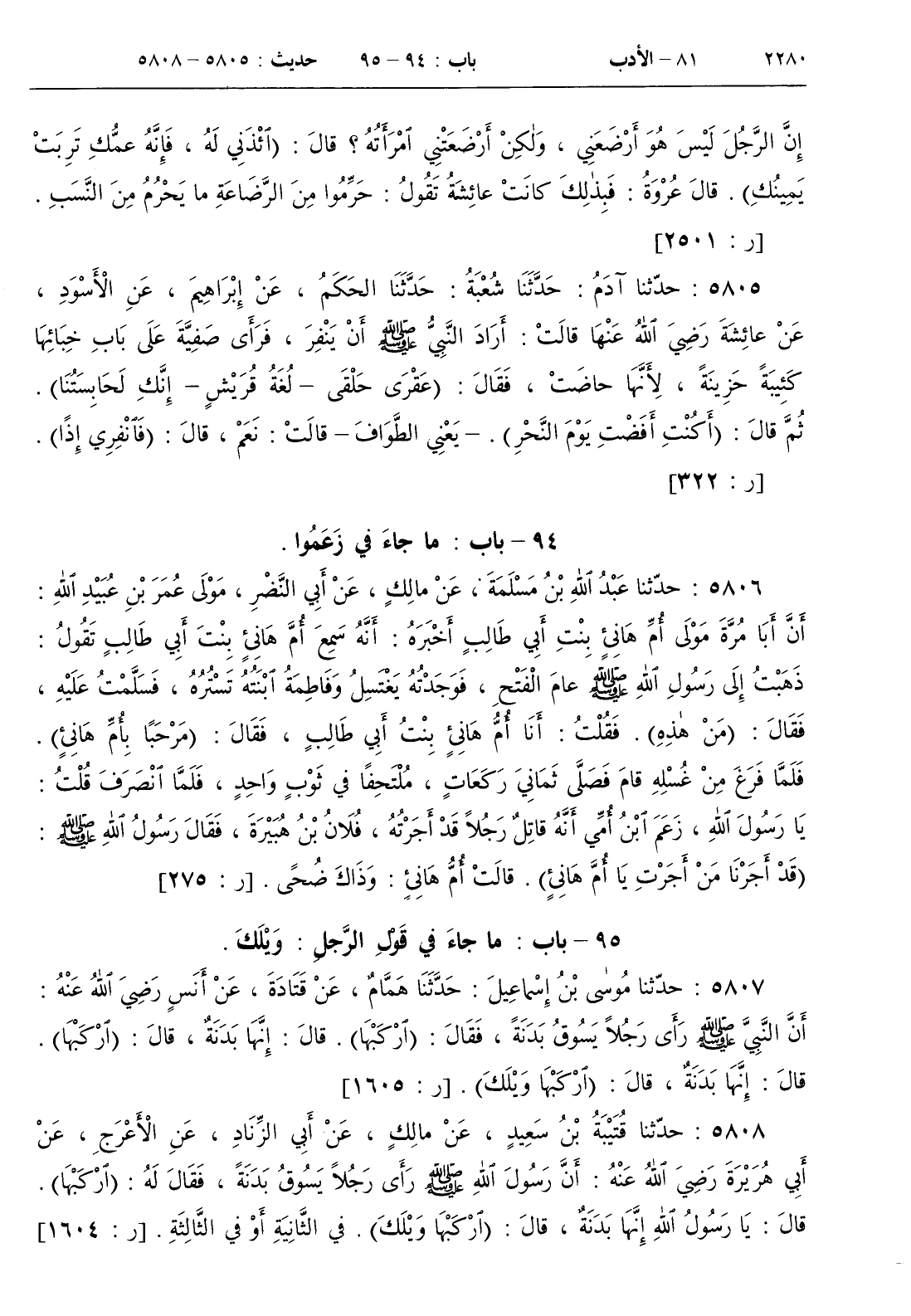 5808 - حدثنا قتيبة بن سعيد عن مالك عن أبي الزناد عن الأعرج عن أبي هريرة رضي الله عنه