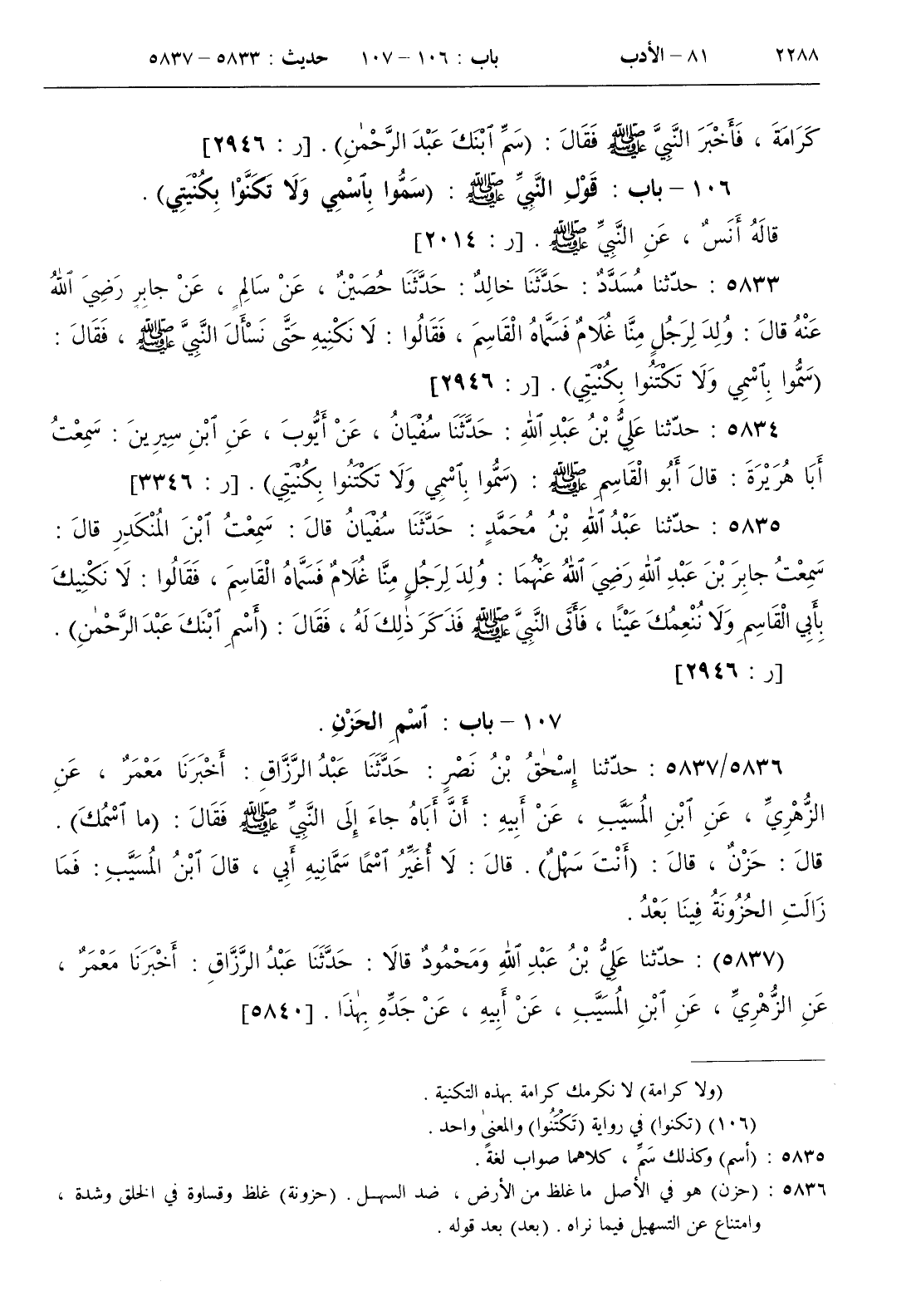 5836 - حدثنا إسحق بن نصر حدثنا عبد الرزاق أخبرنا معمر عن الزهري عن ابن المسيب عن أبيه