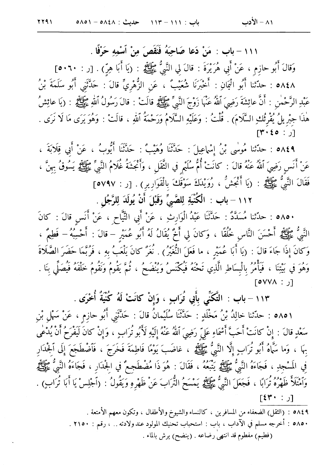 113 - باب التكني بأبي تراب وإن كانت له كنية أخرى