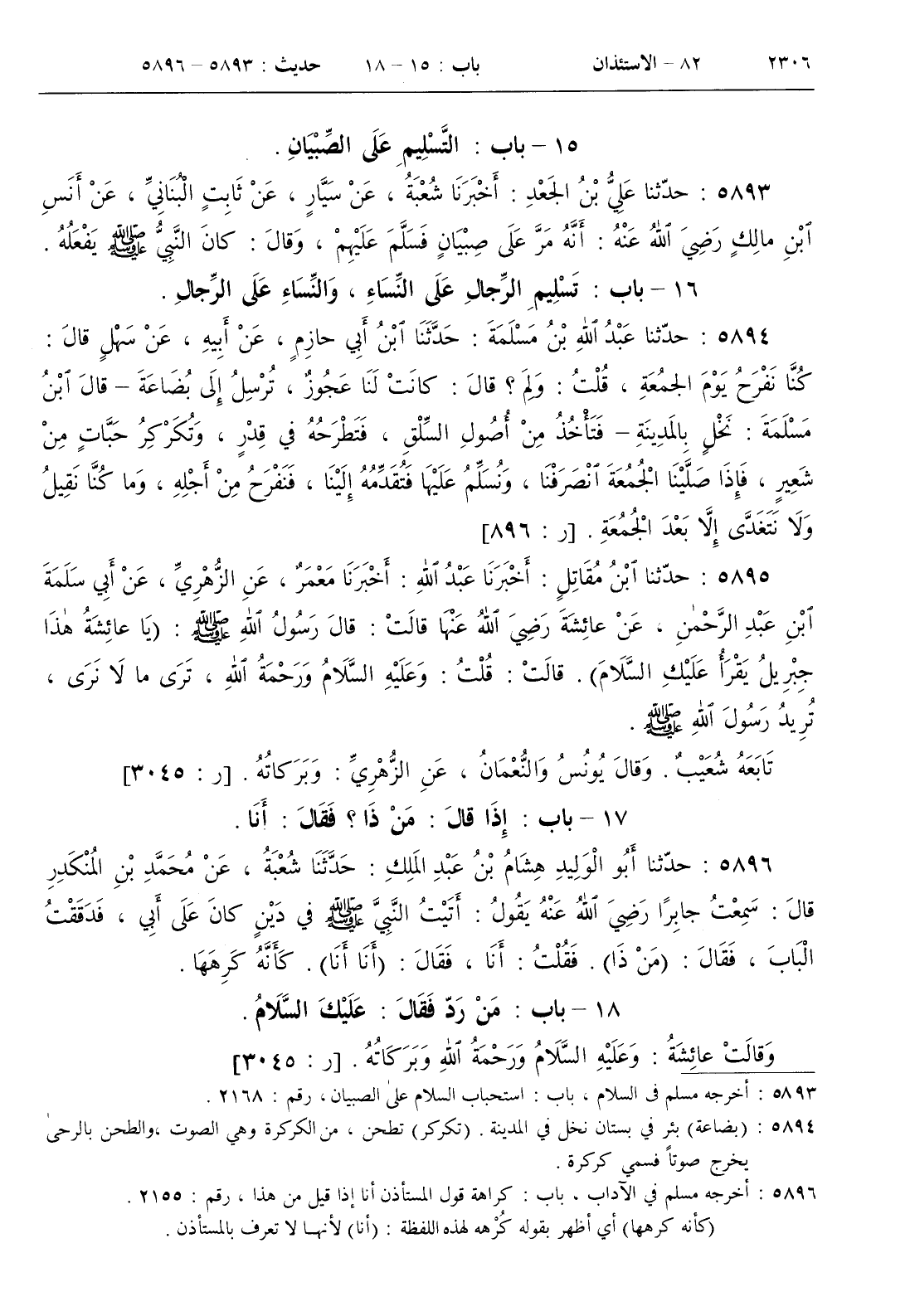 16 - باب تسليم الرجال على النساء والنساء على الرجال